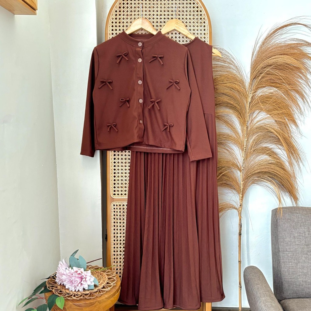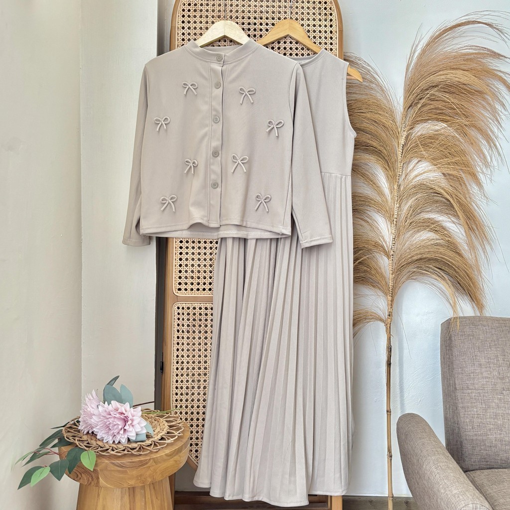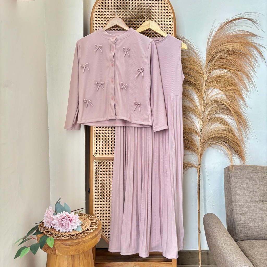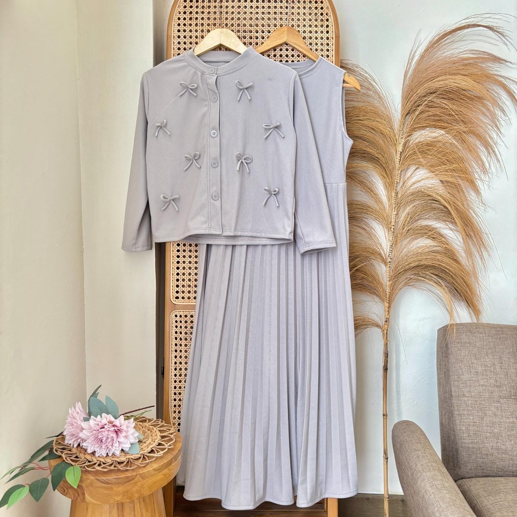 Najwa - READY STOCK Dress bonry Wanita cardigan dan dress plikset - gaun wanita