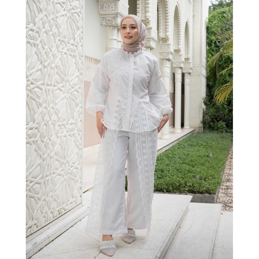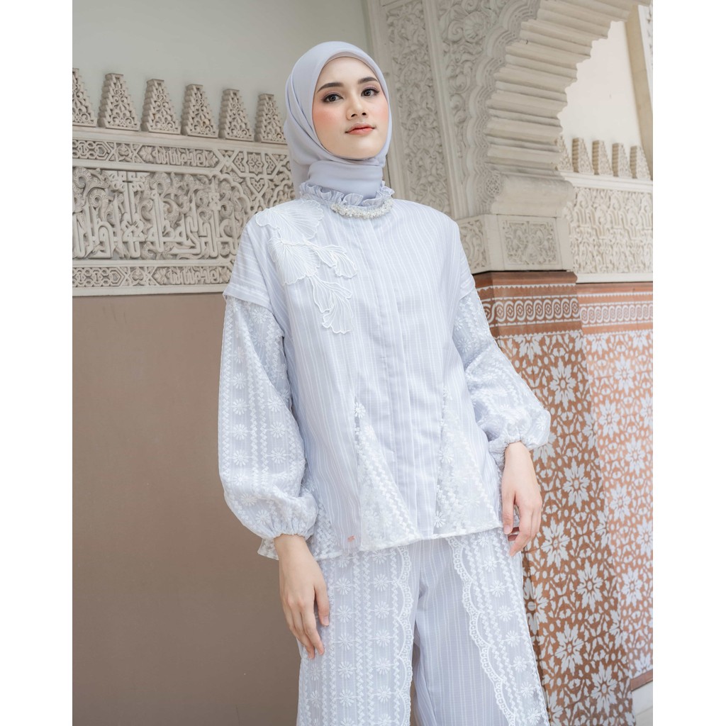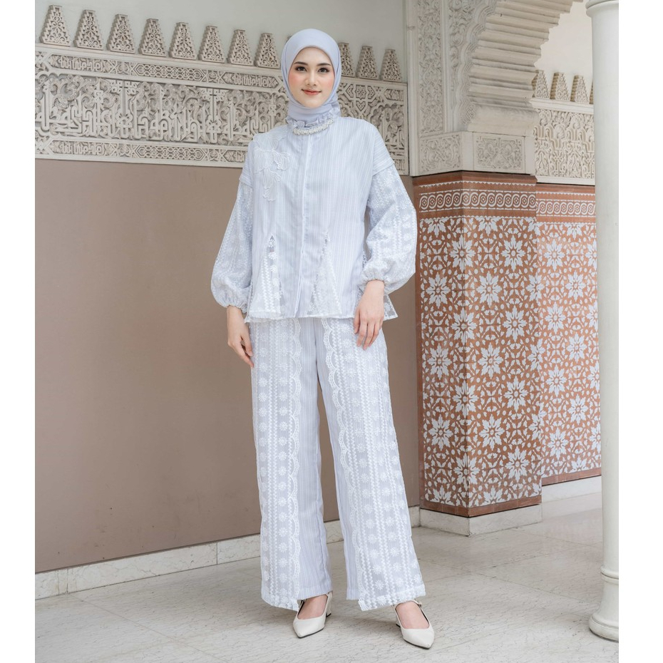 Mayoutfit Naiya Set Sea Side Series | Stelan Blus Celana Wanita Kombi Brukat Renda Bordir Patch