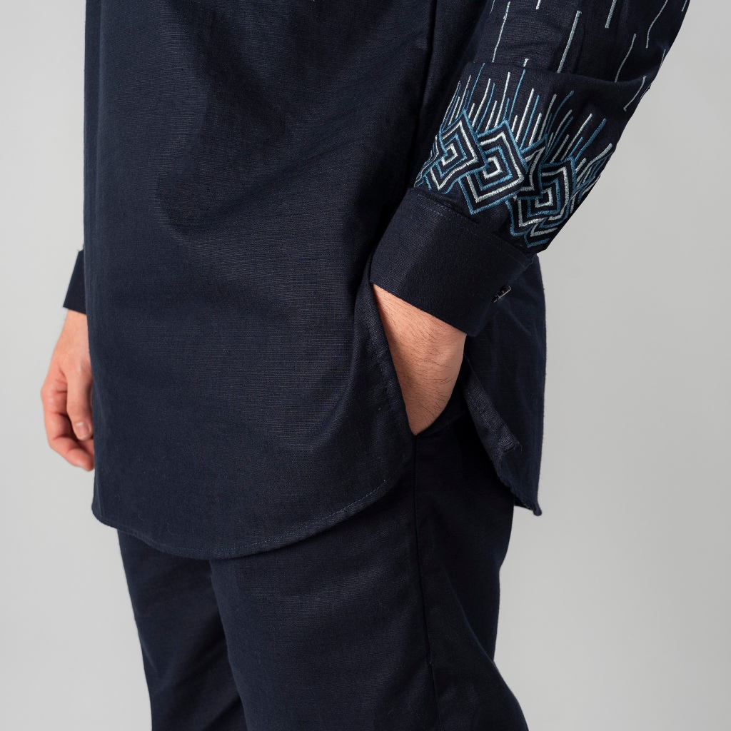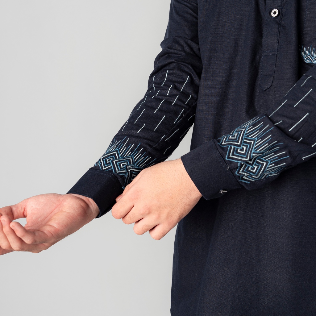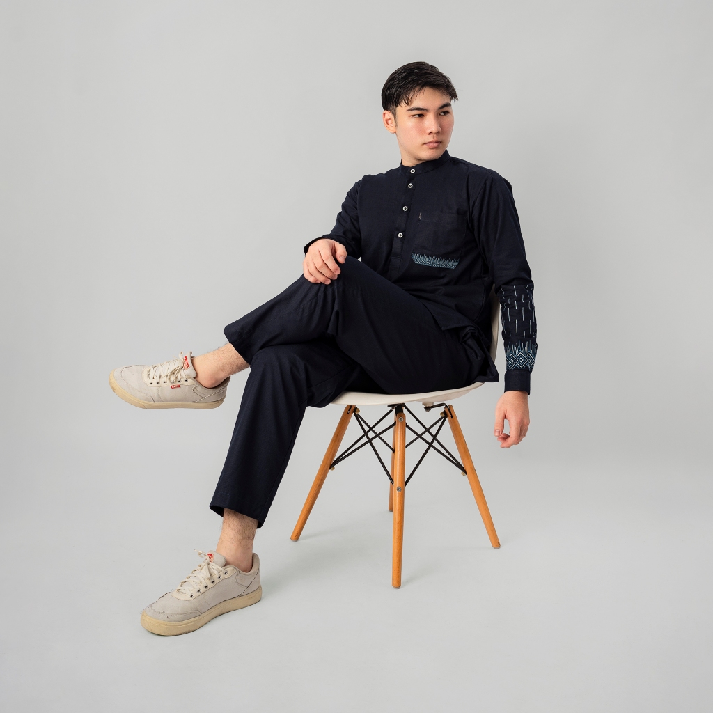 KATSAE - Oneset Kashafa Pria Dewasa Setelan Baju celana Muslim | Set Kemeja Koko Kurta Bordir Premium Warna Navy