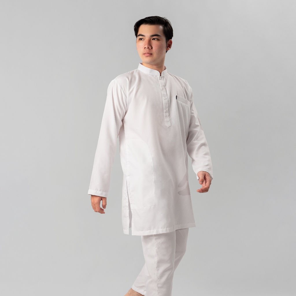 KATSAE - Oneset Turkey Baju Koko Pria Dewasa Kemeja Koko Pria One SET Lengan Panjang Katun Soft Premium Warna Putih