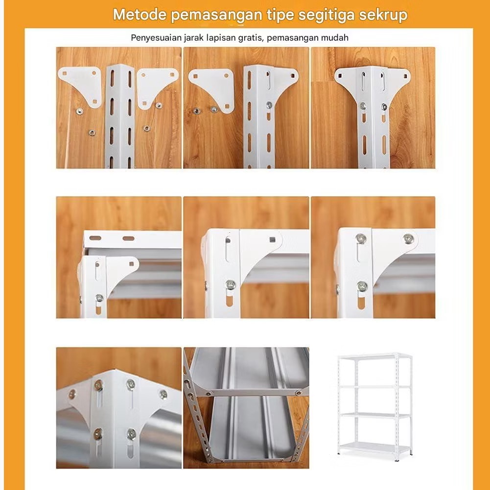 ES Rak Besi Siku Serbaguna Tahan Karat - Rak Gudang & Penyimpanan Kuat Anti Karat, Adjustable, untuk Dapur/Perabotan/Display