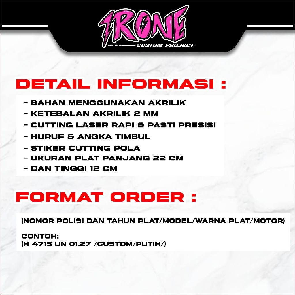 IRONE CUSTOM FRAME PLAT NOMOR VIRAL MODEL JDM ALL DESAIN SUDAH PNP SEMUA MOTOR K.02