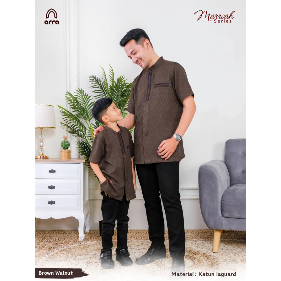 ARRA Marwah Sarimbit Keluarga Brown Walnut Baju Lebaran Couple Cokelat Koko Dewasa Anak Pria