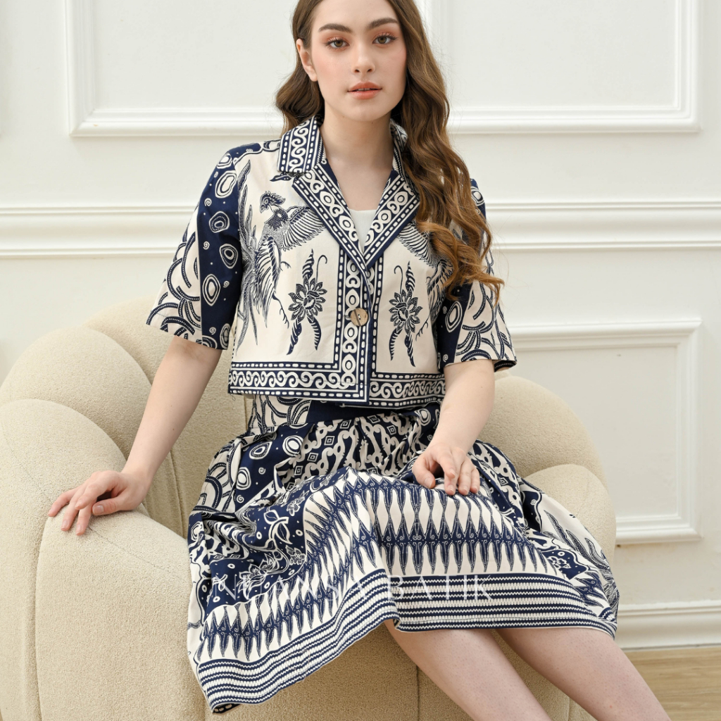 Nuansa Batik Setelan Batik Lengan Pendek Rok Batik Midi Bahan Katun Stretch