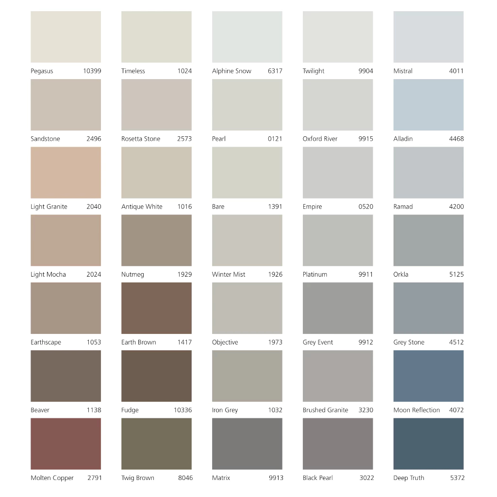 WARNA LAIN CHAT DULU, PUTIH, SPACE 10678, VINTAGE COAT - S4030, S0515-R20B, BERMUDA PINK S0540, 7040 CYPRESS, ROSETTA STONE 2573, BACCHUS 6250, CANDY 2127, RAW CANVAS 10961, BORROWED LIGHT FB, SOUR ONION 7037, 1131 FOHN, CHARMED VIOLET BM, S4020-B30G, MORNING FOG, BRILLIANT WHITE NP, OLD CREAM 1154, EMPIRE 0520, ICE POPPY 6279, WASHED GREEN, S1030-B70G, S2020-B90G, PRESENT 12180, BEACH HONEY, PEGASUS, 20120 ORGANIC RED, S0505-B20G, POINT PLEASANT, HOLISTIC 1516, 1160 MORNING LIGHT, WHITE MALVA, GREY REVOLUTION 4350, COTTON SKY 4397, S1030-B50G, PALE FOLLIE 4277, DELIGHTFUL PINK, SILKY PINK 20054, SWISS IRIS 4198, COASTAL BLUE 5504, MIDNIGHT FLOSS, SANDSTONE, DESERT SAND 1037, YELLOW RIVER 1158, DELIGHTFUL PINK 2992, COPPERTONE 1029, REFLECTION 4446, BELGIAN BROWN 10385, ORKLA 5125, HEALING LAVENDER, EVENING STONE 1564, GENTLE GREEN 7245, RIVER WATERS NP, MORNING LIGHT 1160, WILTSHIRE CREAM 1648, WHEAT 1019, TIMELESS 1024, HINT OF GREEN, COOL BENJI, ICE TURQUOISE 5136, PLUM COUTURE 3123, EMBRACE 12179, CONTEMPORARY WHITE, PEACH 1017, BLUSH PINK 2046, ETERNAL BLUE 4108, 4154 LAVENDAR WHIP, ROMANTIC 1304, APRIL GREEN 8109, CLEAR 1442, GLACIER 6011, AROMA GARDEN 6263, DIJON YELLOW 10001, MAGNOLIA 0566, SMOOTH IVORY 1038, PEACH SKY 1117, S5040-B10G, EARTH BROWN 1417, SANDBEIGE 1939, HOUR GLASS 1250, GREY STONE 4512, LYS JORD 1393, AVOCADO GREEN 0470, RICE ROLL 1432, SKY WHITE 4541, WHITE LACE 1004, GREY TOUCH 12314, SECRET GREEN 7718, NORDIC SEAS 4625, SILKY BLUE 4666, NATURAL CLAY 12124, WHTE LINEN 10182, BLUE LAGOON 4164, 3470, PALLADIUM 1293, NORDIC BREEZE 5452
