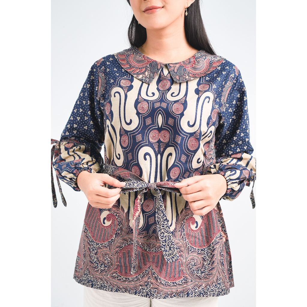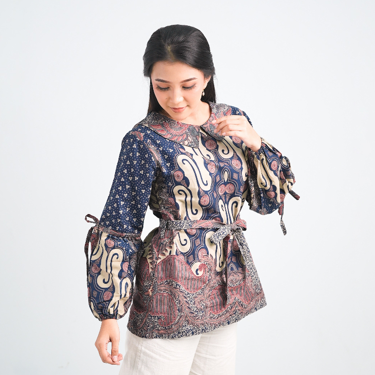 BATIK TRUSMI Blouse Batik Atasan Wanita Motif Liris Kombinasi Satya Cocok Untuk Seragaman