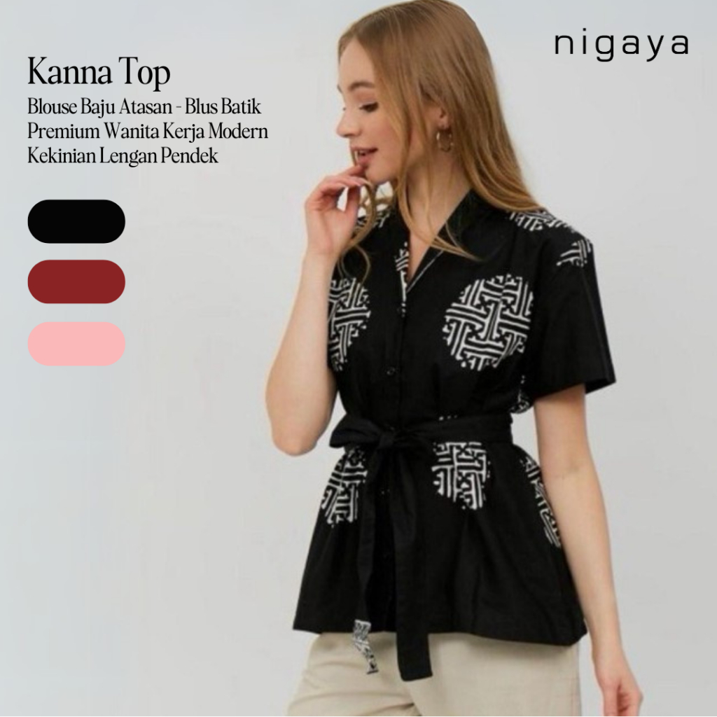 NIGAYA - Kanna Top - Blouse Baju Atasan - Blus Batik Premium Wanita Kerja Modern Lengan Pendek