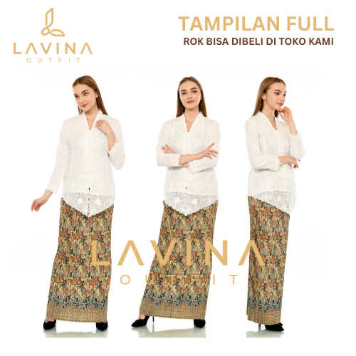 Lavina - Kebaya Encim Bordir Modern Batik Tradisional Betawi Broken White Putih Tulang Lengan Panjang Jumbo Big Size