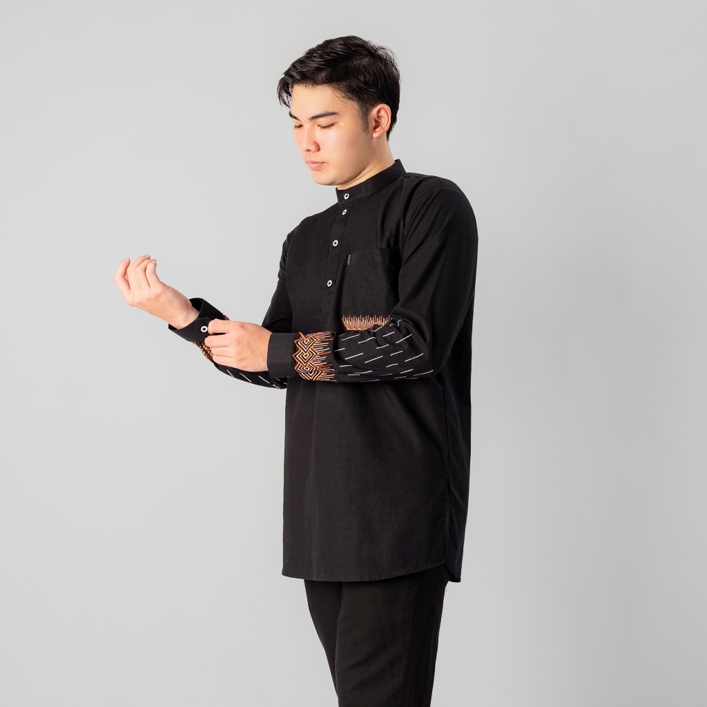 KATSAE - Oneset Kashafa Pria Dewasa Setelan Baju celana Muslim | Set Kemeja Koko Kurta Bordir Premium Warna Hitam