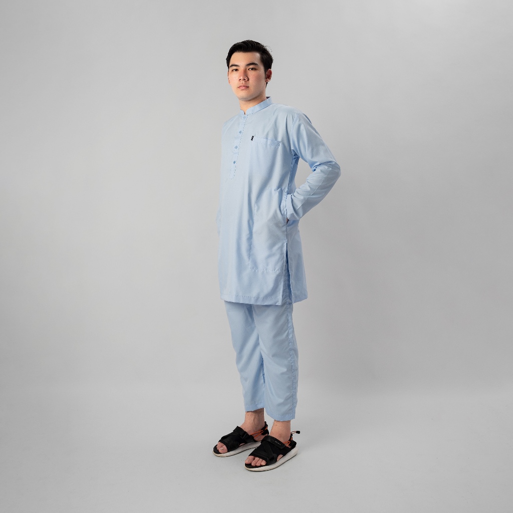 KATSAE - Oneset Turkey Baju Koko Pria Dewasa Kemeja Koko Pria One SET Lengan Panjang Katun Soft Premium Warna Sky Blue