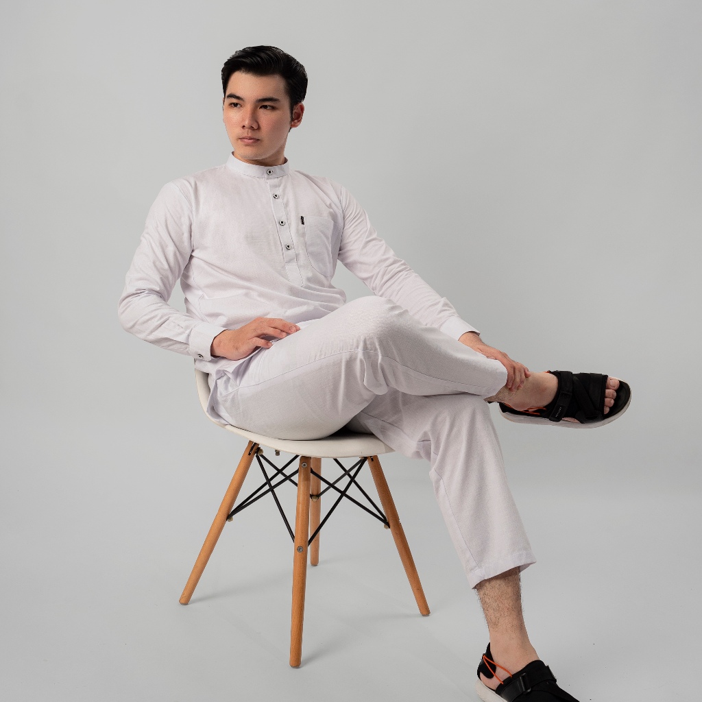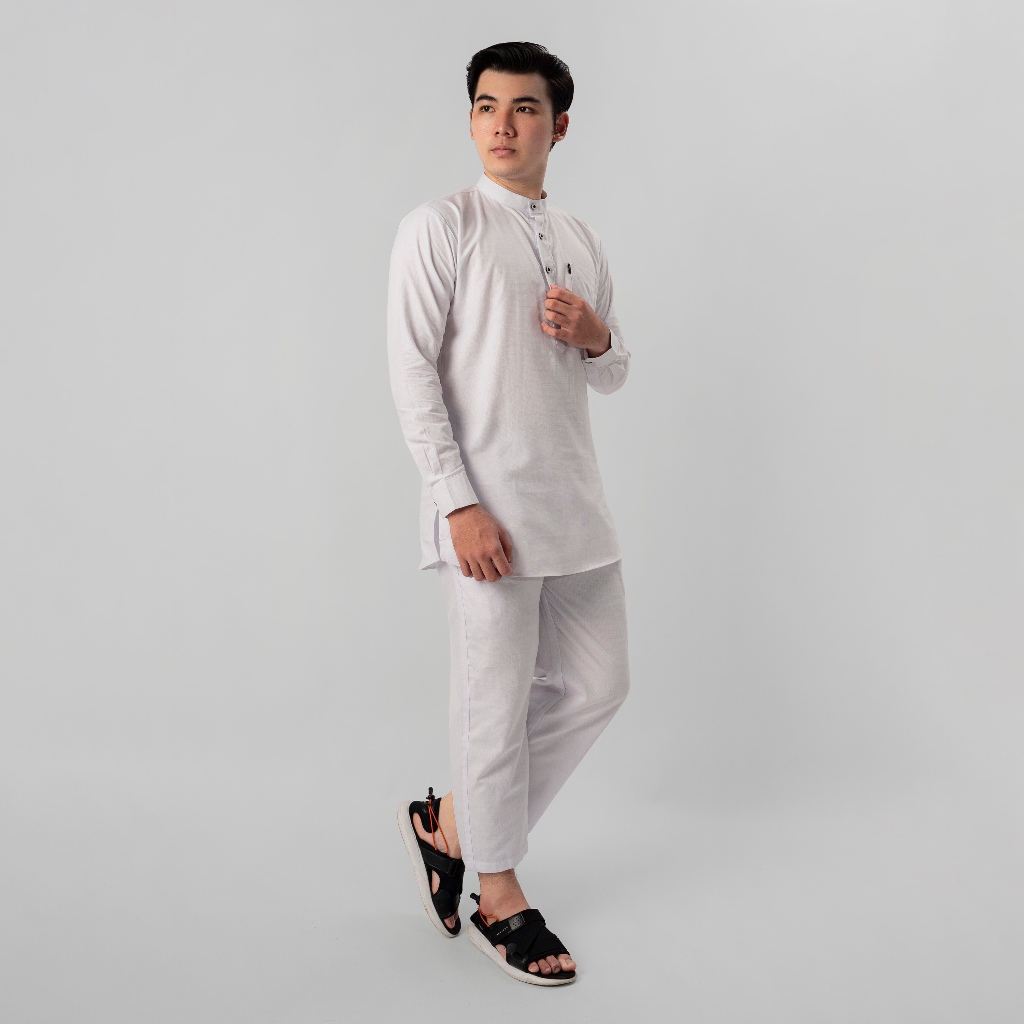 Katsae - Koko Pria Dewasa Setelan Baju celana Muslim Hazem | Set Kemeja Koko Kurta Premium Warna Putih