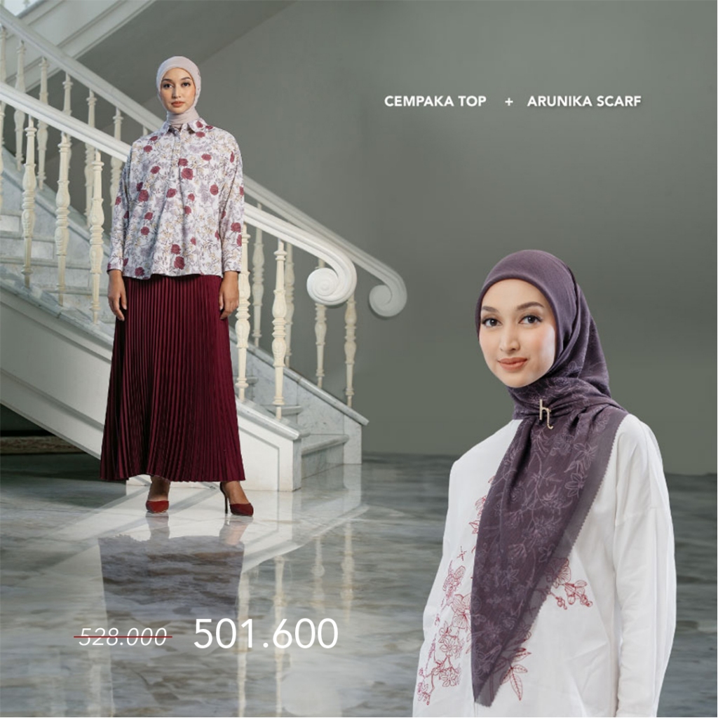 Bundling Hemat HijabChic Cempaka Top dan Arunika Scarf - Setelan Kemeja dan Kerudung