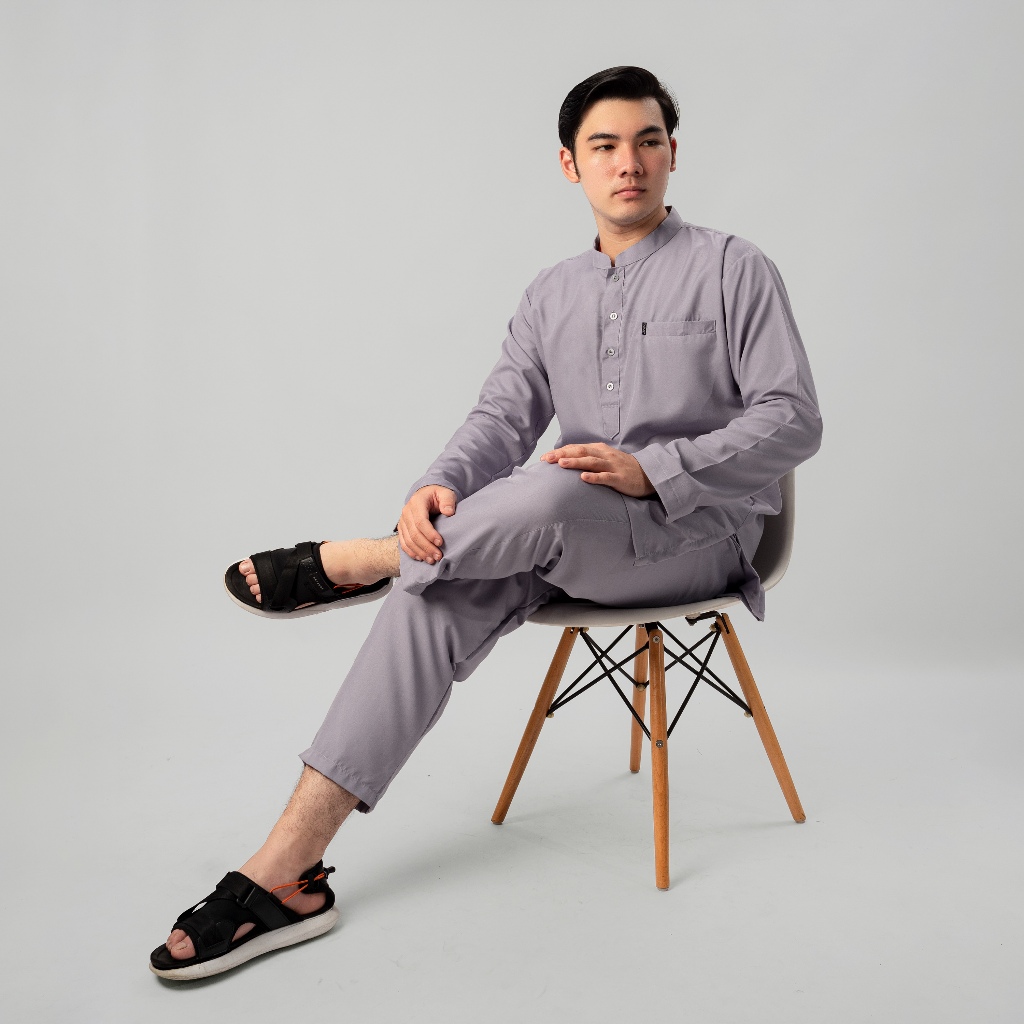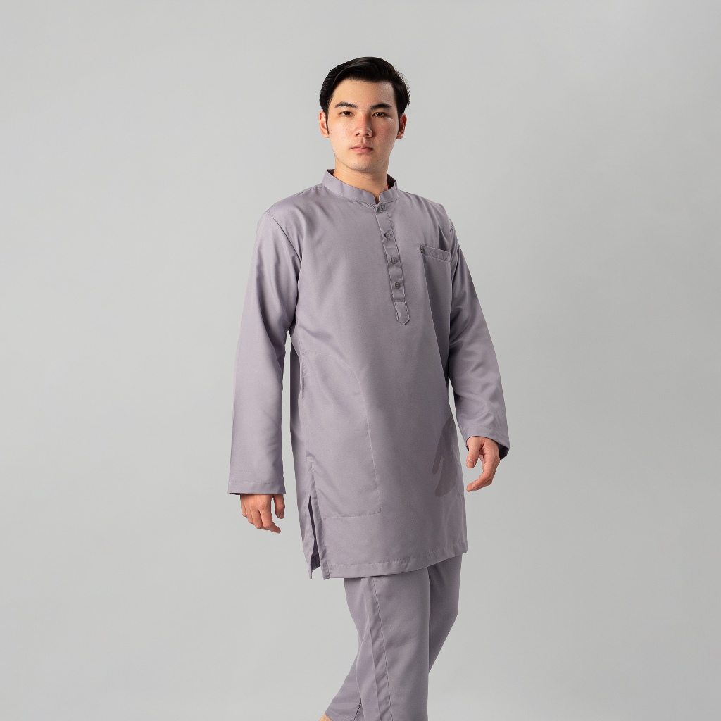 KATSAE - Oneset Turkey Baju Koko Pria Dewasa Kemeja Koko Pria One SET Lengan Panjang Katun Soft Premium Warna Grey