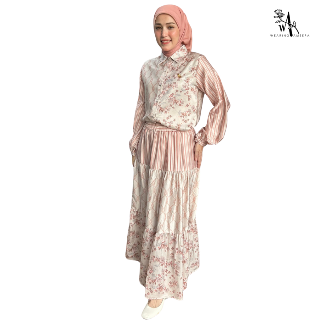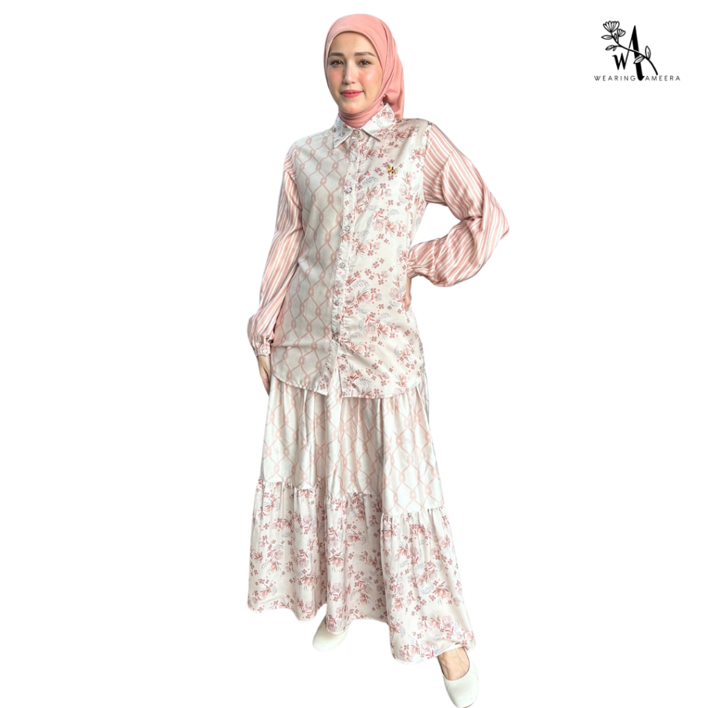 Wearing Ameera - Salwa One Set Atasan Rok Hijab Wanita Cream
