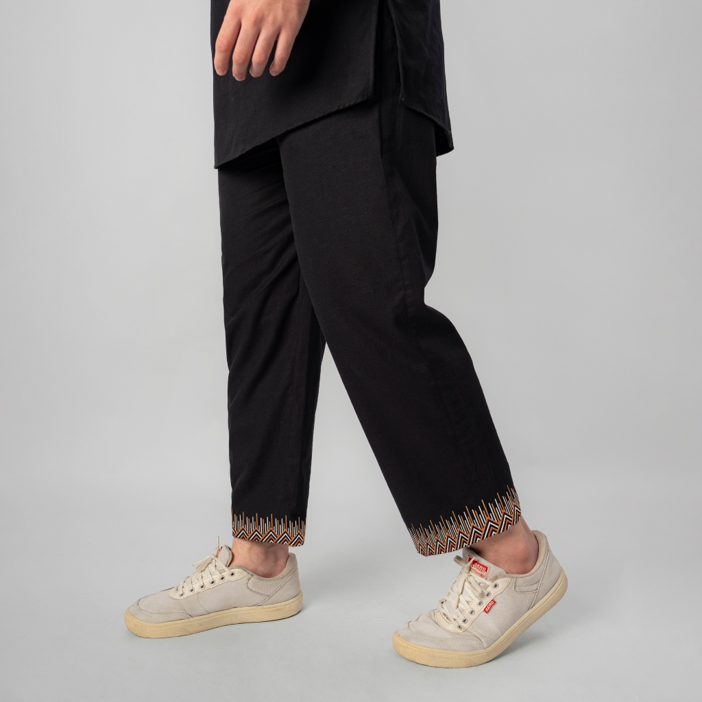 KATSAE - Oneset Basel Pria Dewasa Setelan Baju celana Muslim | Set Kemeja Koko Kurta Bordir Premium Warna Hitam