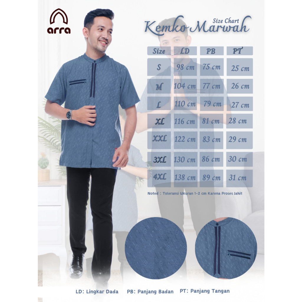 ARRA Marwah Sarimbit Keluarga Biru Baju Lebaran Couple Blue Sapphire Koko Dewasa Anak Pria Gamis