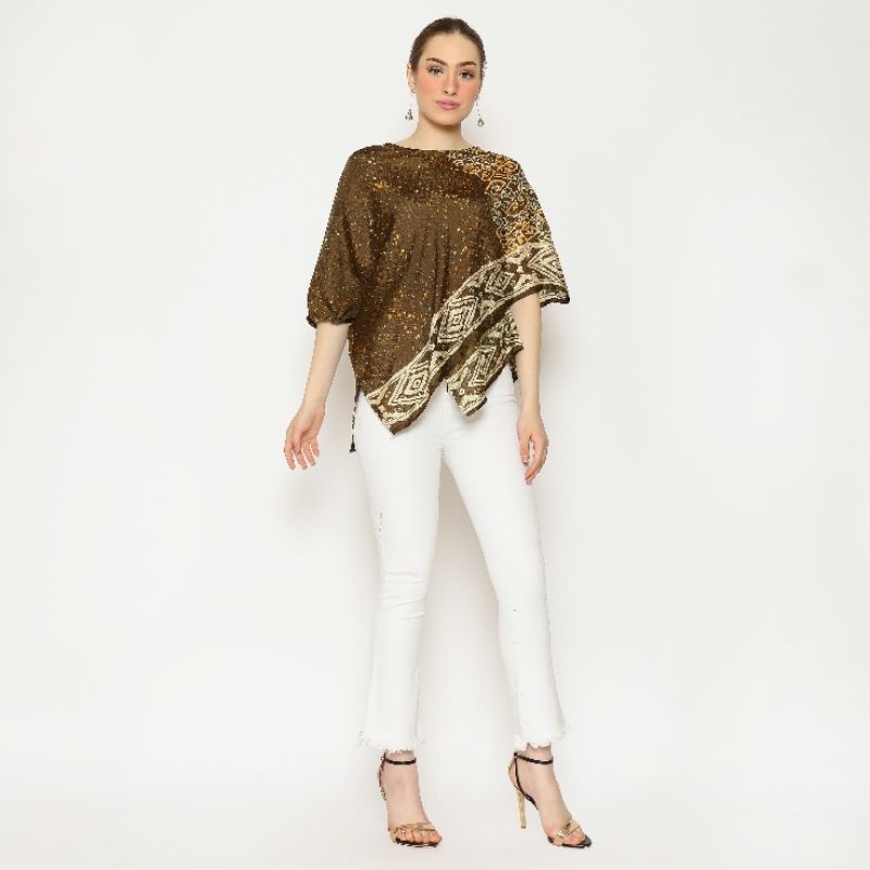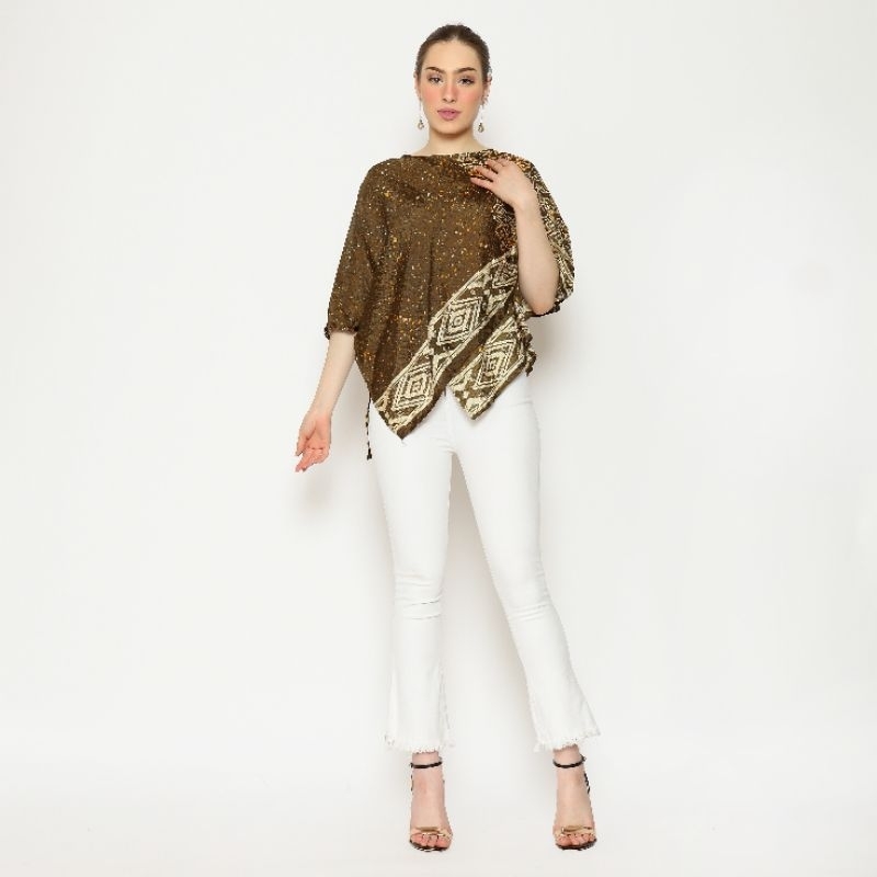 Rinjanie Batik - Blouse Zigzag Lena - Olive Green - Blouse Batik - Batik Cap Modern - Outift Batik Kekinian