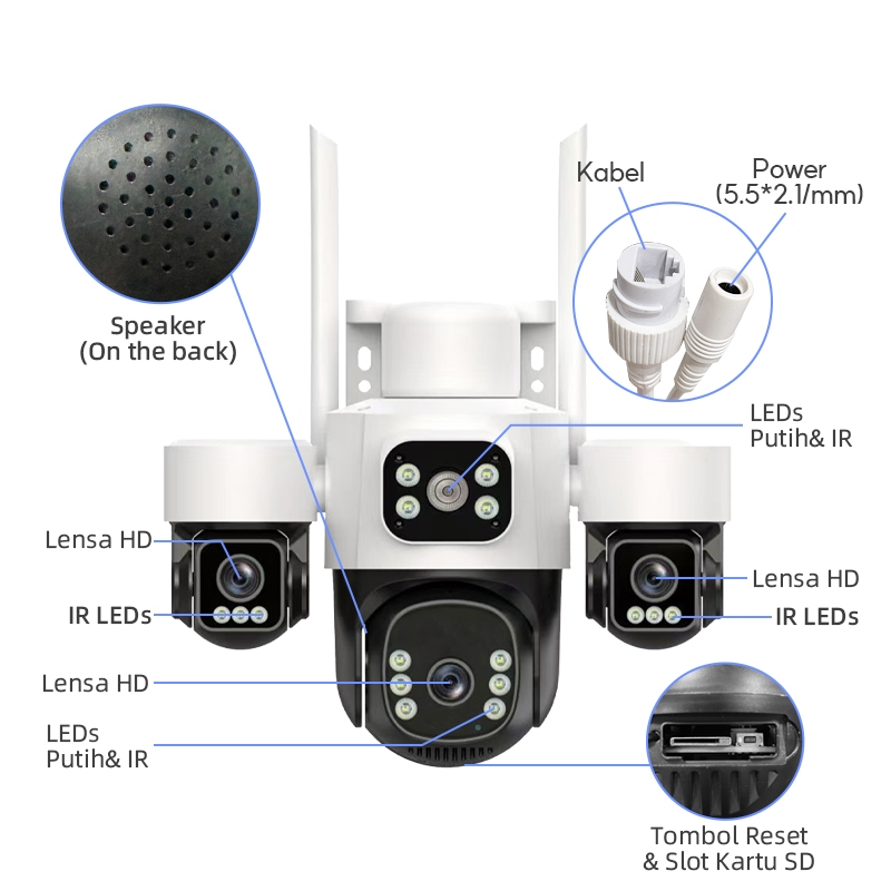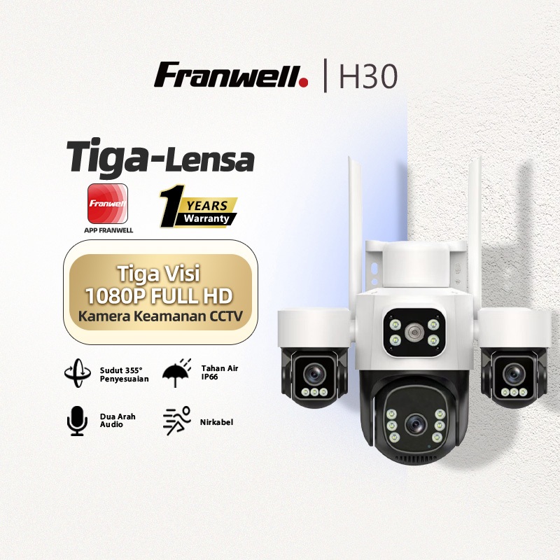 Franwell CCTV WiFi 3 Lensa Outdoor Gambar Jelas Siang Malam Tahan Hujan Mudah Pasang HP Pantau