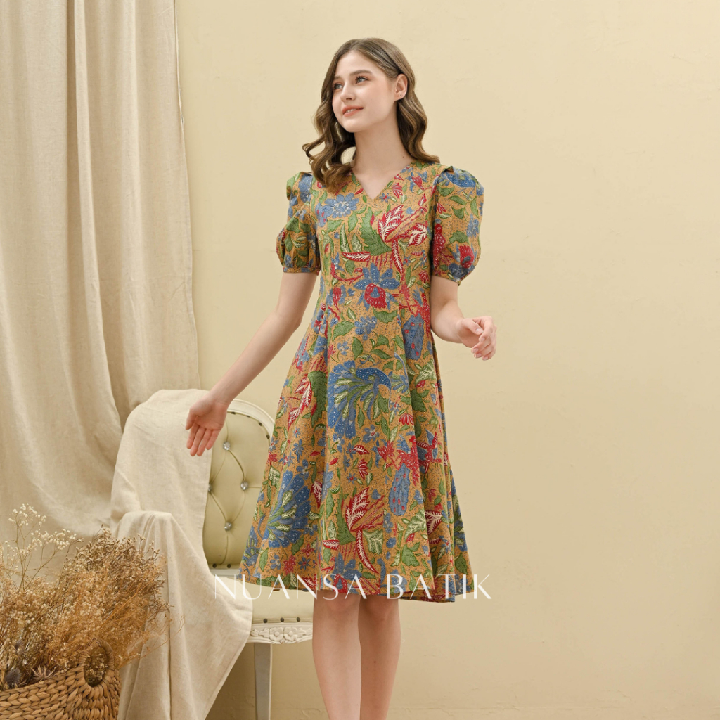 Nuansa Batik Dress Batik Midi Lengan Pendek Bahan Katun Stretch