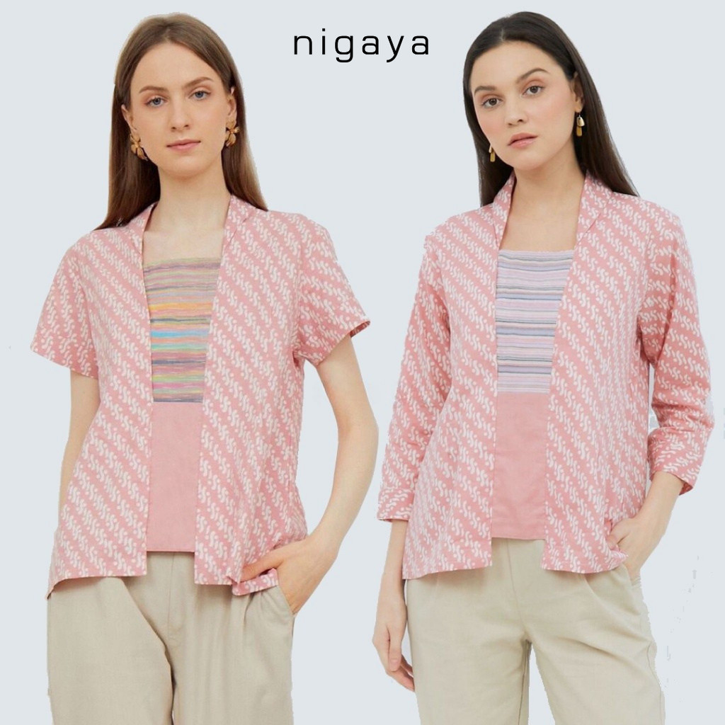 NIGAYA - Jossy Top-Blouse Baju Atasan Blus Batik Premium Wanita Kerja Modern Kekinian Lengan Pendek