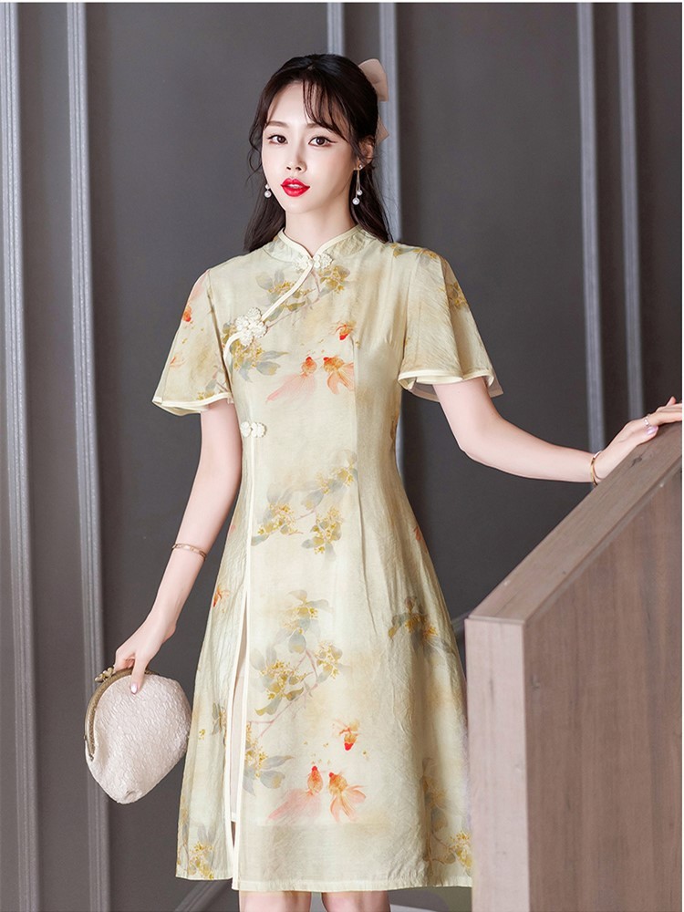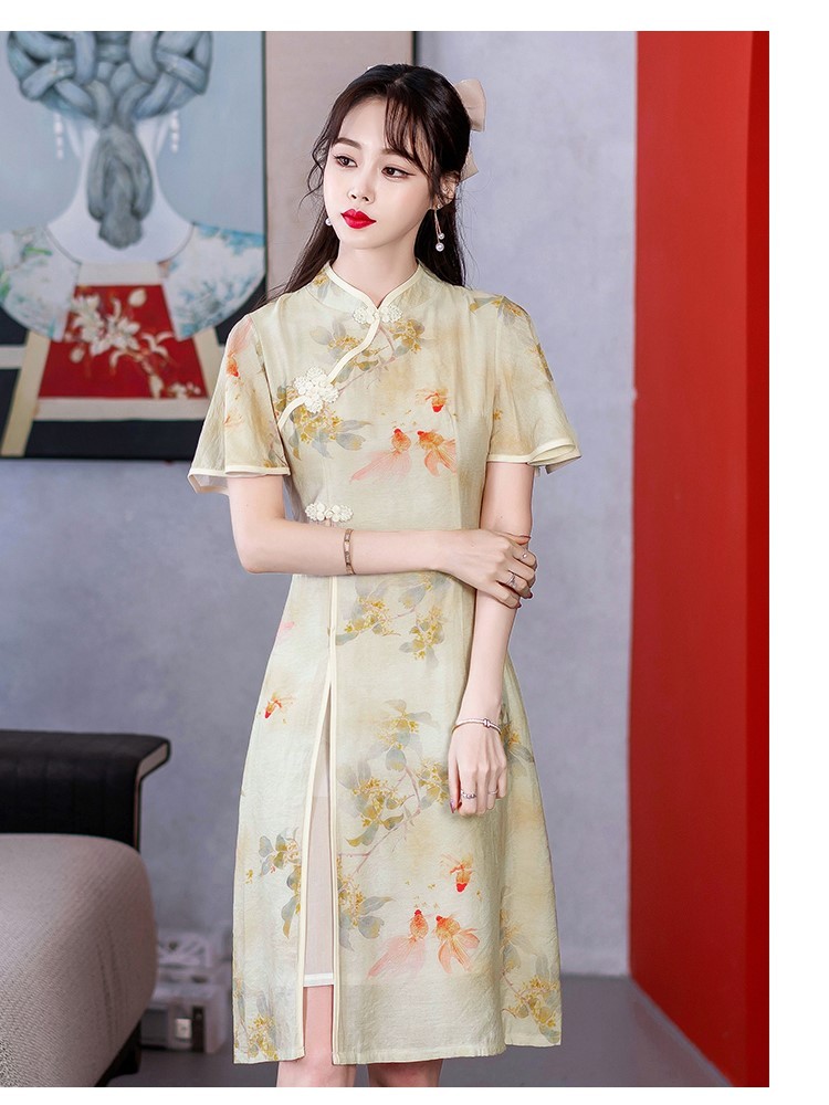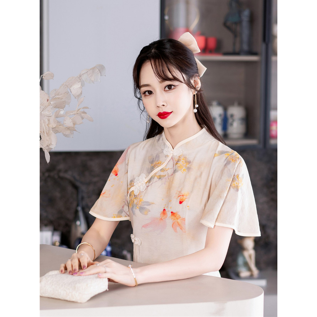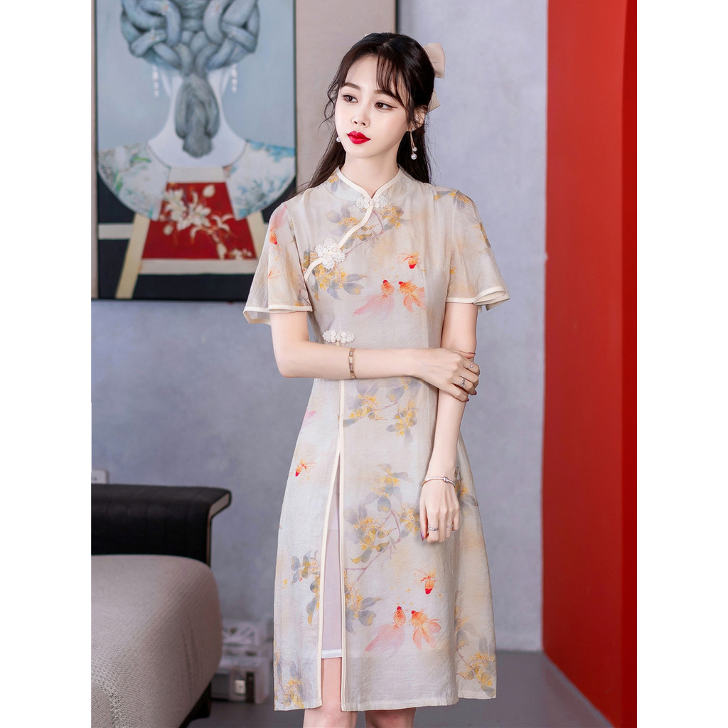 Tianshun Modern Qipao New China Traditional Clothing Chiffon G 0 L Dfish Print Women's Midi Dress Party Casual Qipao Sum