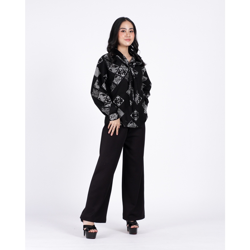 BATIK TRUSMI Atasan Wanita Blouse Batik Jumbo Mega Mendung Persegi Hitam Cocok Untuk kerja