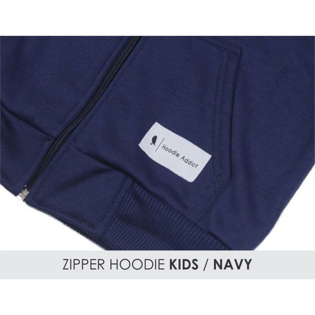 Hoodie Addict - Zipper Anak Unisex Warna Navy Laki-laki Perempuan Premium Original Tebal