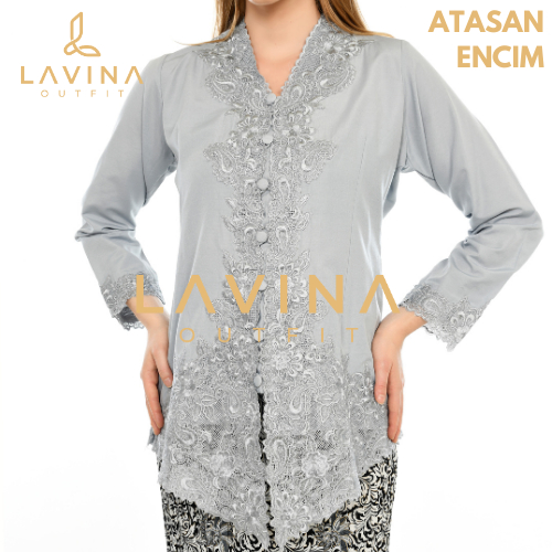 Lavina - Kebaya Encim Bordir Modern Batik Tradisional Betawi Abu Grey Silver Lengan Panjang Jumbo Big Size