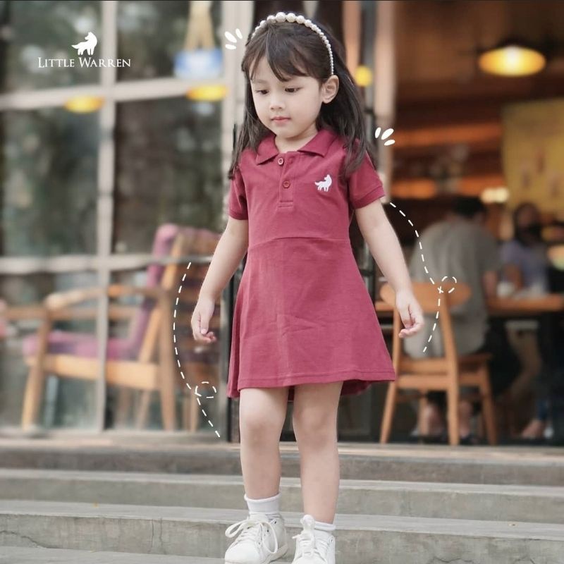 LITTLE WARREN Baju Polo Dress Anak Premium Maroon ( Kaos Kerah Anak )