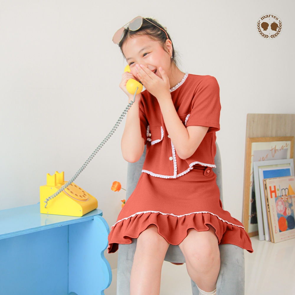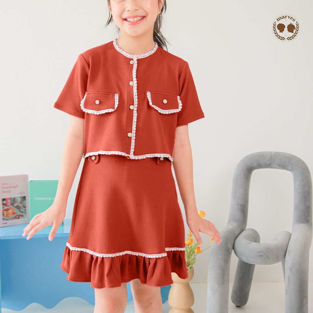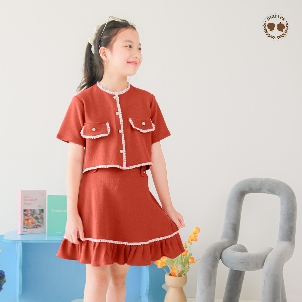 MARVES Sesil Setelan Rok Baju Anak Perempuan Bahan Knit Usia 2 Hingga 14 Tahun