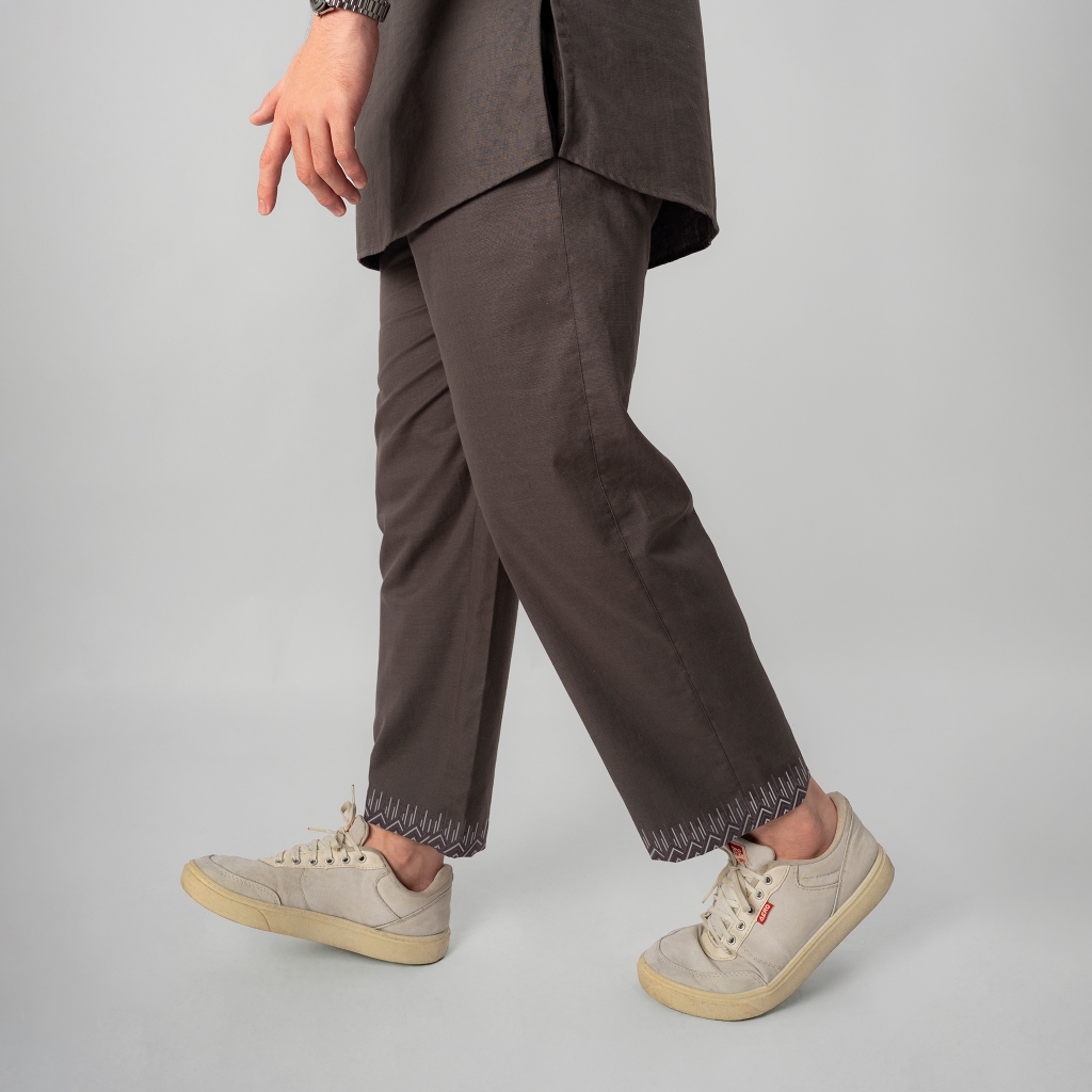 KATSAE - Oneset Basel Pria Dewasa Setelan Baju celana Muslim | Set Kemeja Koko Kurta Bordir Premium Warna Dark Grey