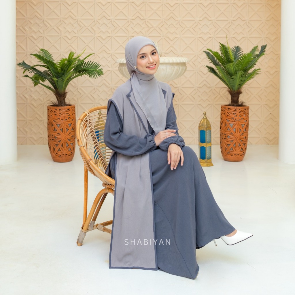 SHABIYAN-602 Gamis Cardigan Panjang Muslimah Set Inner Outer Kombinasi Hijab Friendly