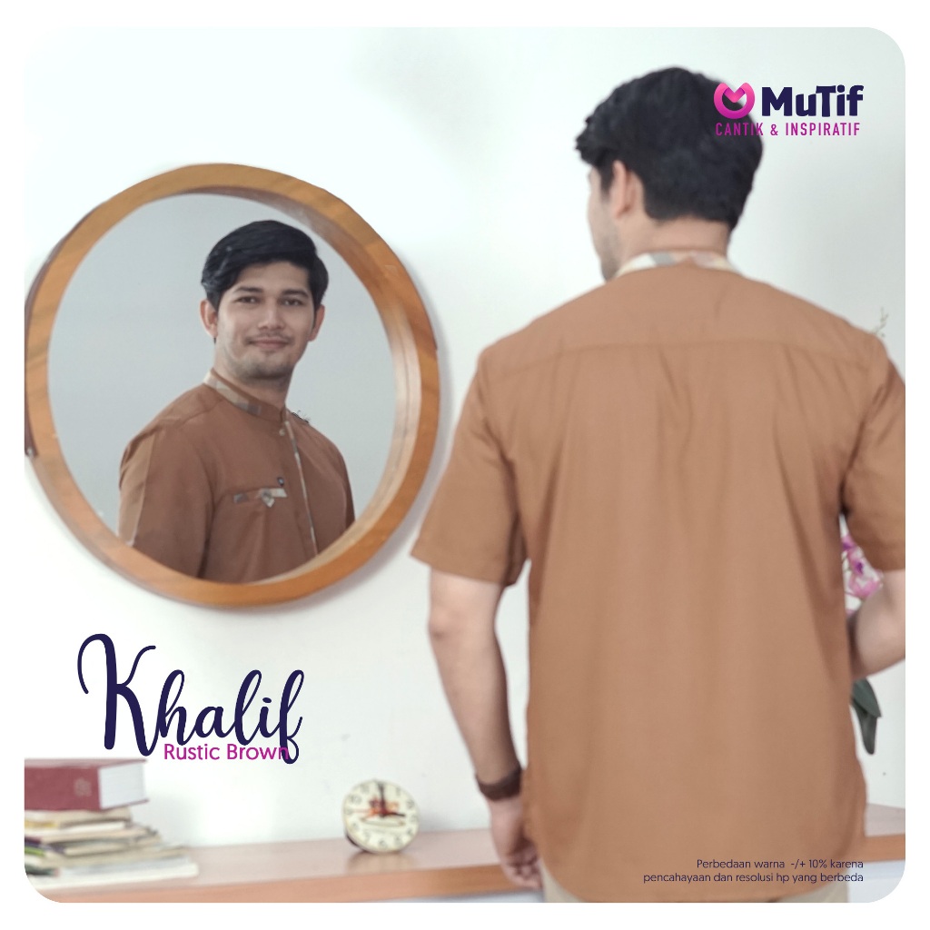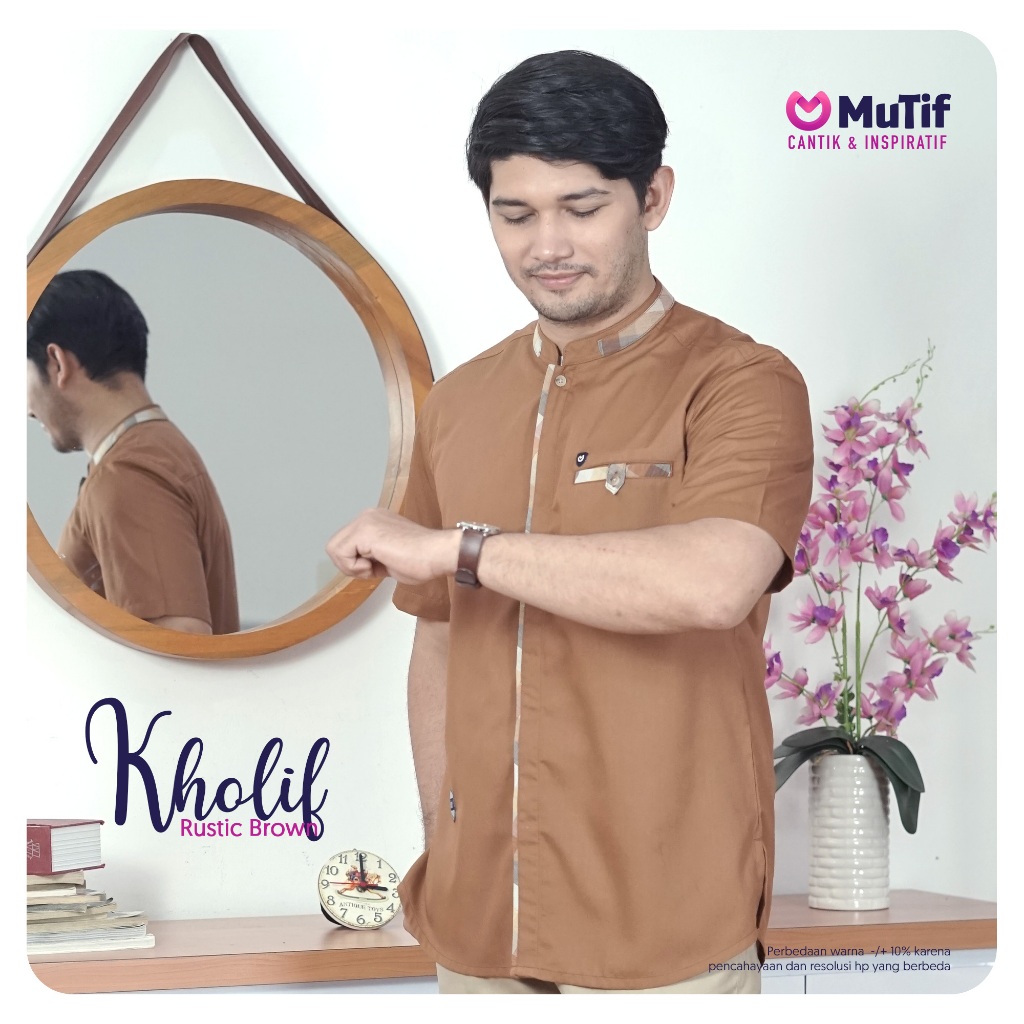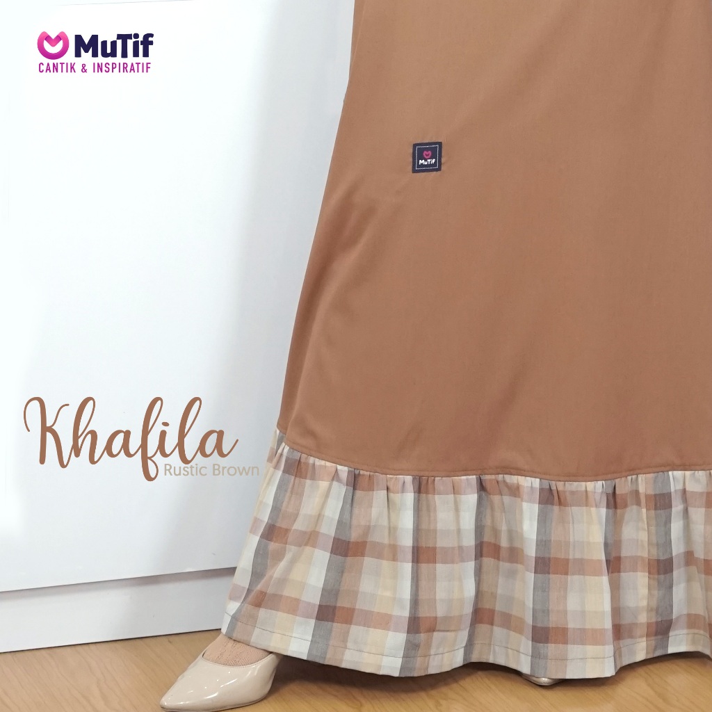 MUTIF Khafila Kholif Brown Couple Dewasa Koko Tangan Pendek dan Dress Gamis Panjang Motif Kotak
