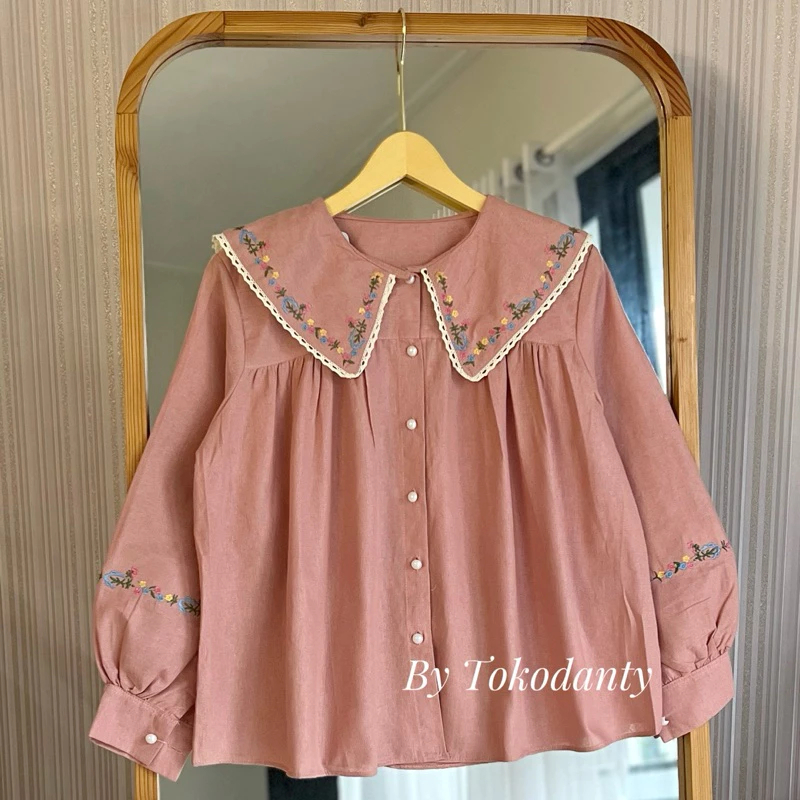Atasan Wanita Kekinian Lumina Shirt Linen Bordir Series Premium Kemeja Wanita Lengan Panjang Korean Style Best Seller