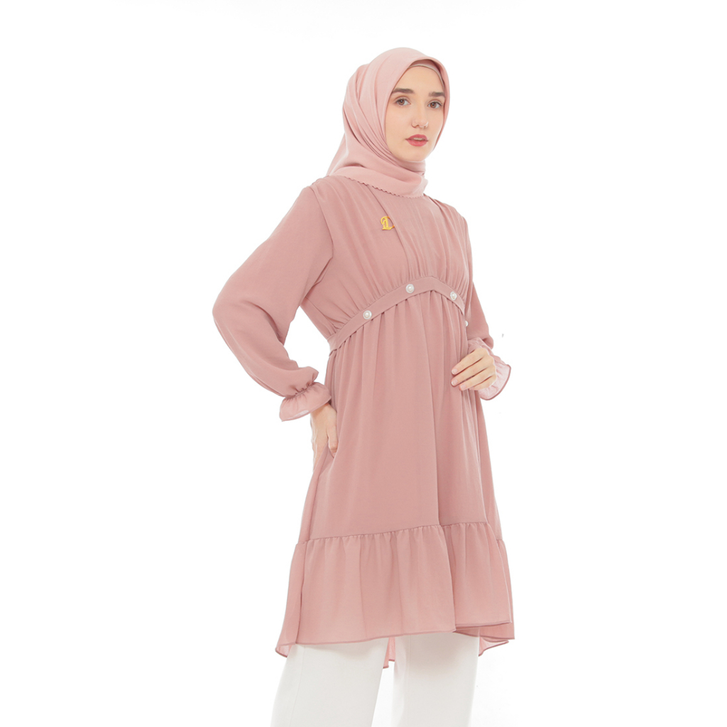 Dzellia - Gracia Tunik Atasan Wanita muslimah atasan bahan nyaman CERUTY PREMIUM (PEACH - L-XL-XXL)