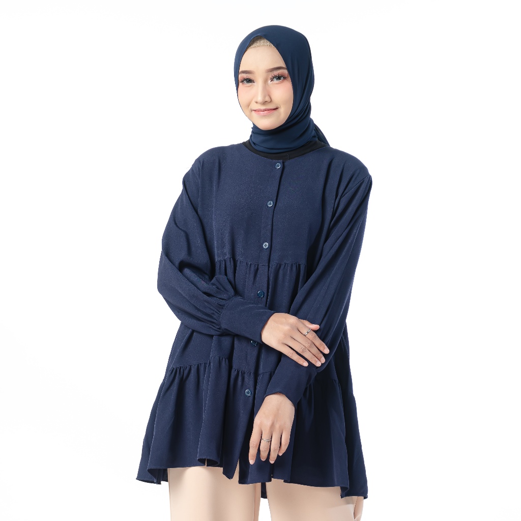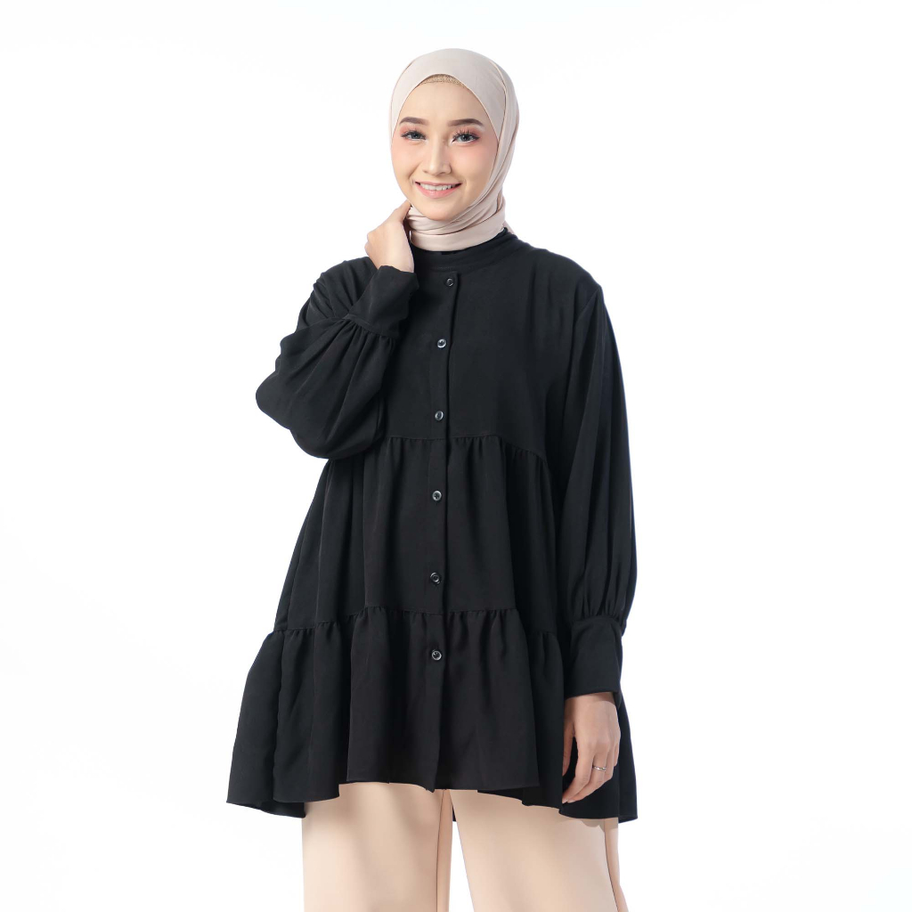 Amie Official Shop Jiandra Shirt Atasan Kemeja Wanita Lengan Panjang Ruffle Serut OOTD Ngampus 2025