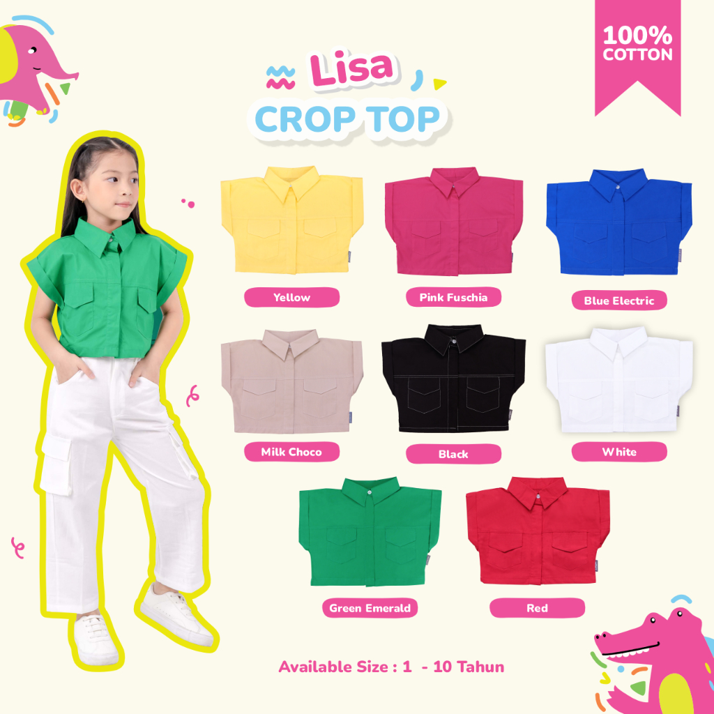 Little Me - Kemeja Anak Perempuan Lisa Crop Top usia 1 - 10 Tahun / Atasan Perempuan Model Crop Top