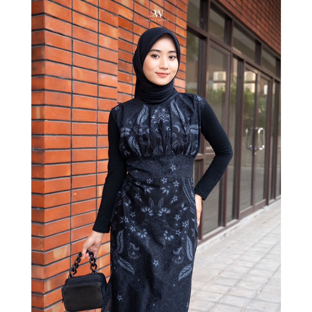 Laskala Woman - Damar | Dress Slit Batik Hitam