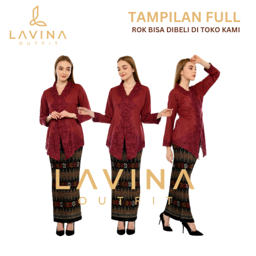 Lavina - Kebaya Encim Bordir Modern Batik Tradisional Betawi Merah Marun Maroon Merah Hati Lengan Panjang Jumbo Big Size