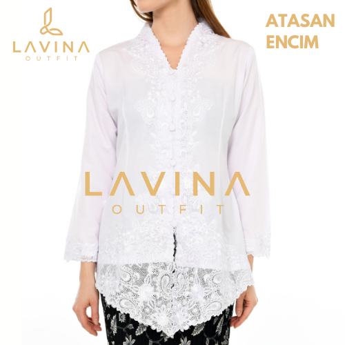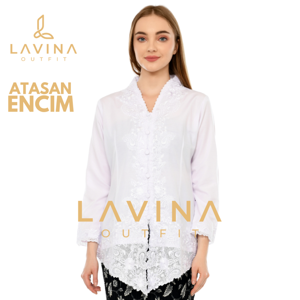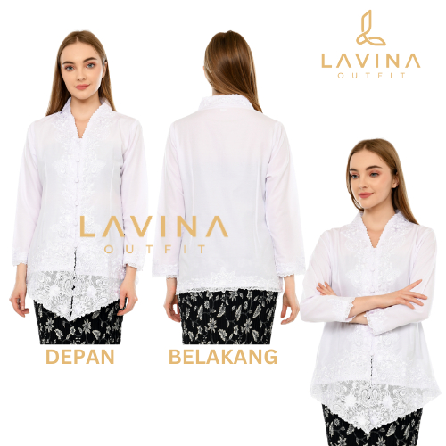 Lavina - Kebaya Encim Bordir Modern Batik Tradisional Betawi Putih Bersih Terang White Lengan Panjang Jumbo Big Size