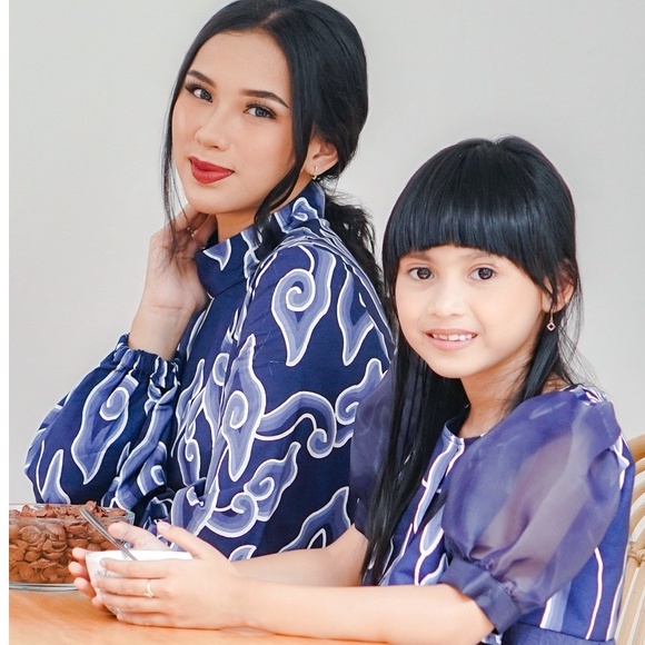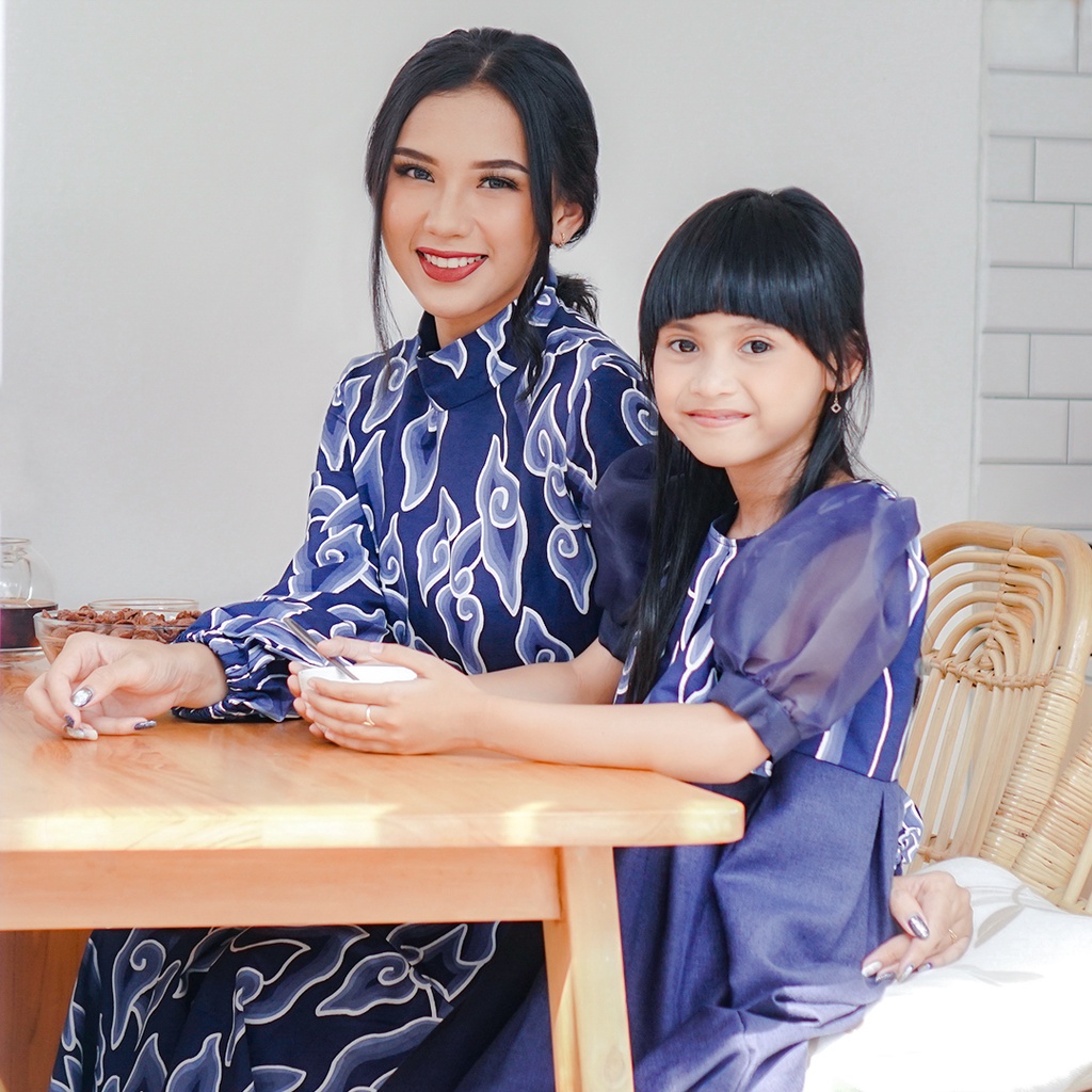 BATIK TRUSMI Dress Batik Wanita SET Couple Ibu dan Anak Mega Mendung Premium