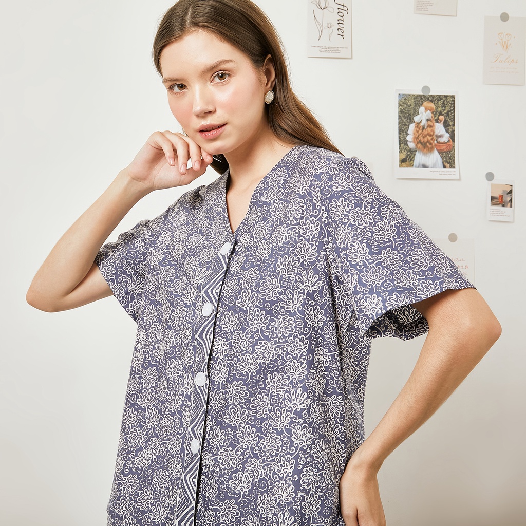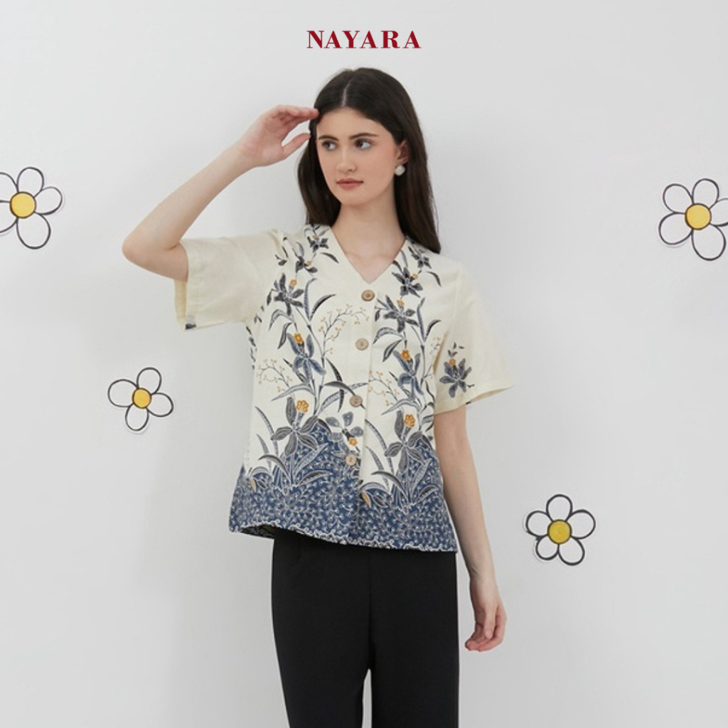 Nayara Fika Blouse Batik Katun Kerah V Neck Fashion Wanita