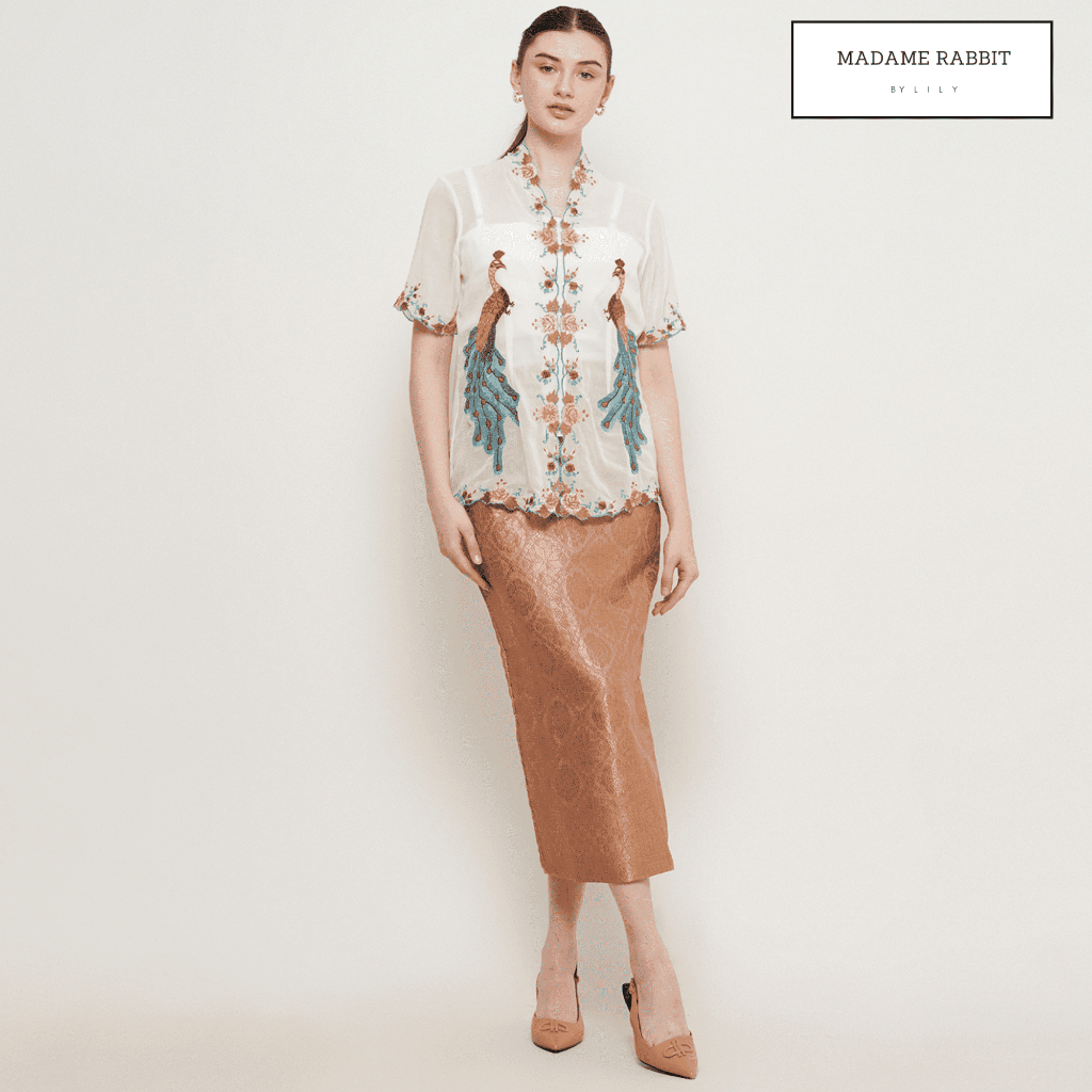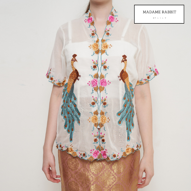 Kebaya Katun Putih Madame Rabbit Bordir Peacock Baju Pesta Halus Rapi