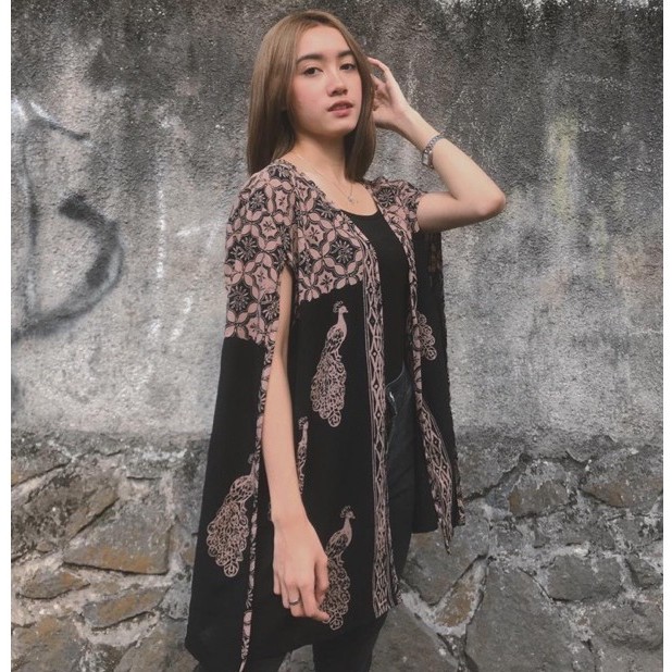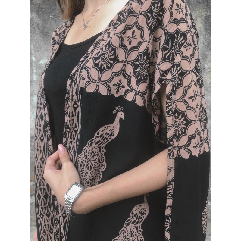 BATIK UNIVERSALKU - Cape Outer Batik motif Peacock Sogan mocca