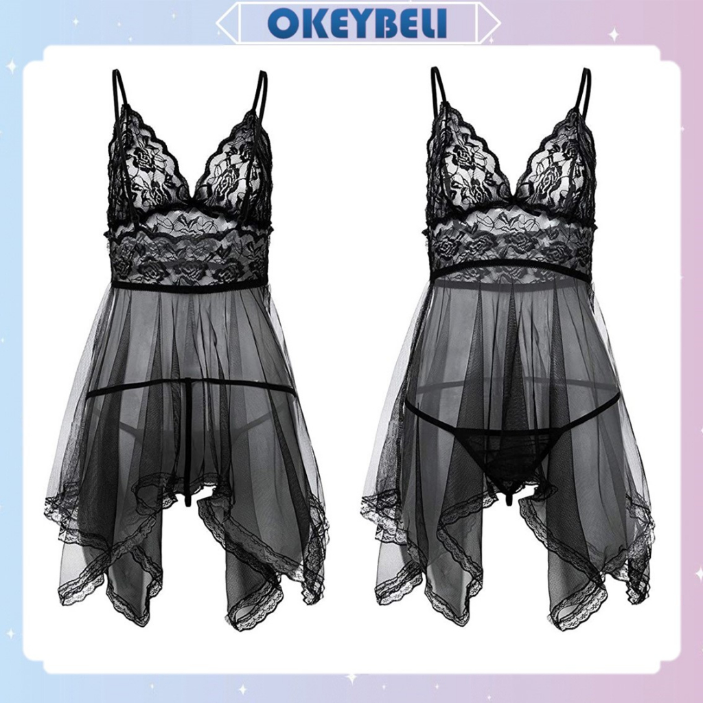 BT002 Pakaian Lingerie Sexy V-Neck Model Renda Serat Mesh Eksotis / G String Bra Set Dres