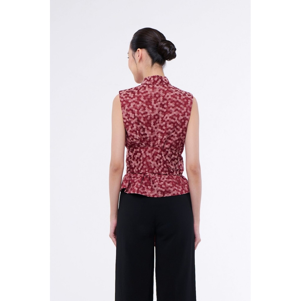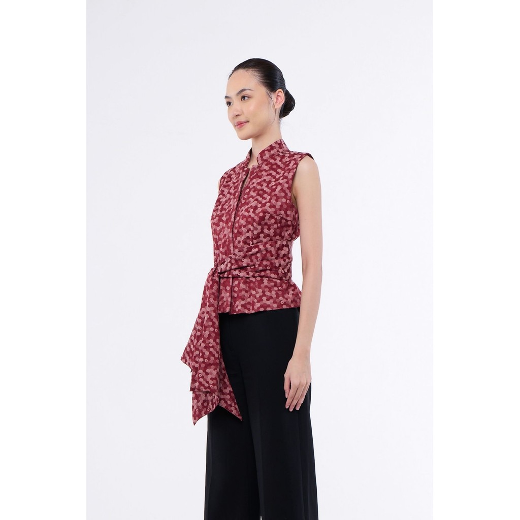 Saina Atasan Wanita Katun Jacquard Merah - Tanpa Lengan Fit di Pinggang Ada Tali Obi