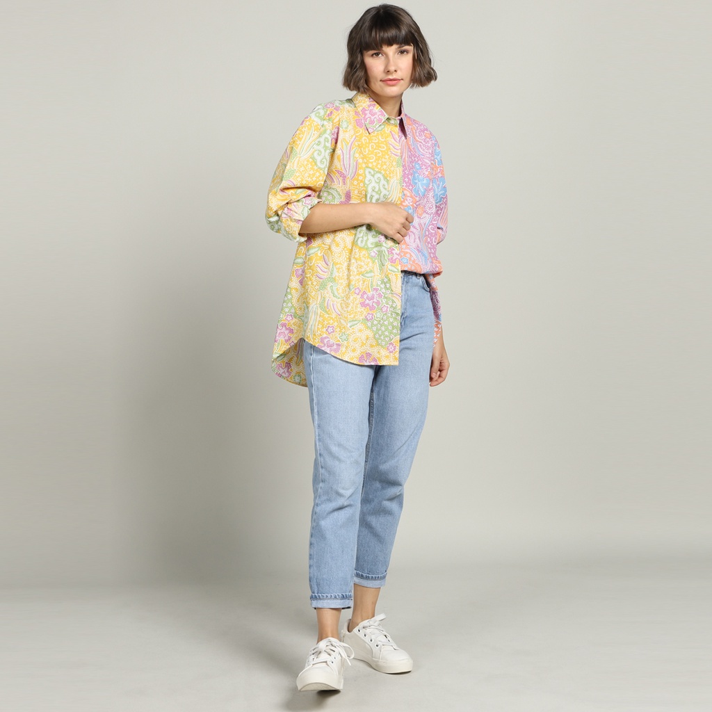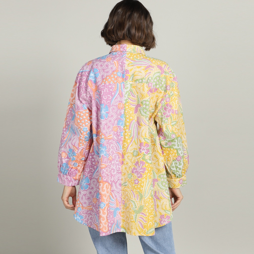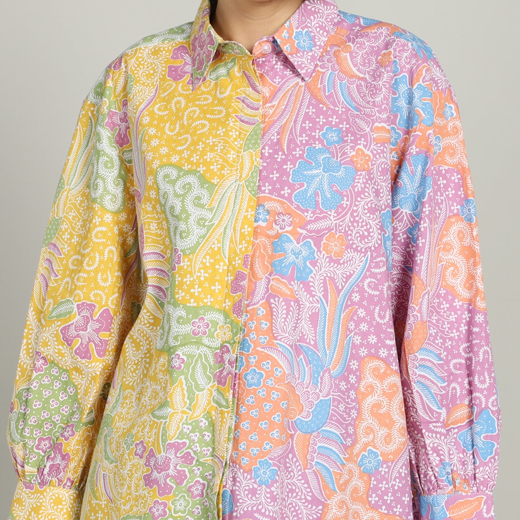 SOKA Color Block Long Sleeve Batik HONG Shirt Sekouwit in Pink&Yellow