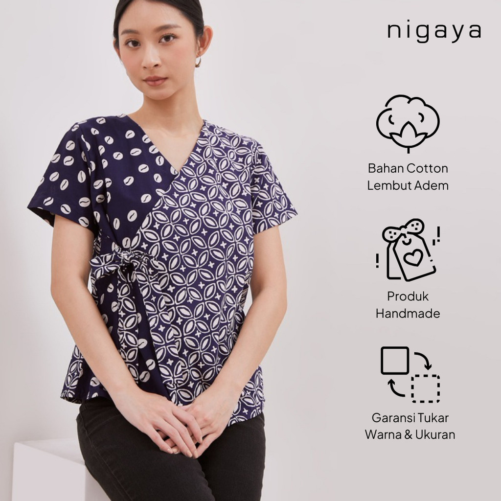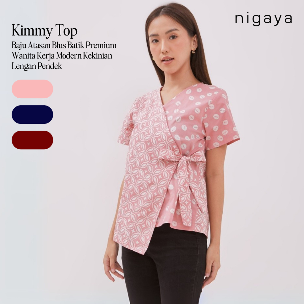 NIGAYA OFFICIAL - Kimmy Top - Baju Atasan Blus Batik Premium Wanita Kerja Modern Kekinian