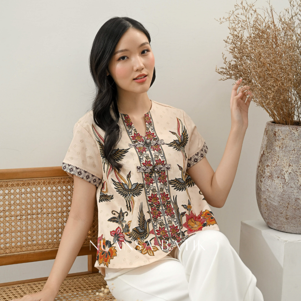 Nuansa Batik Blouse Batik Model Koin Lengan Pendek Bahan Katun Stretch