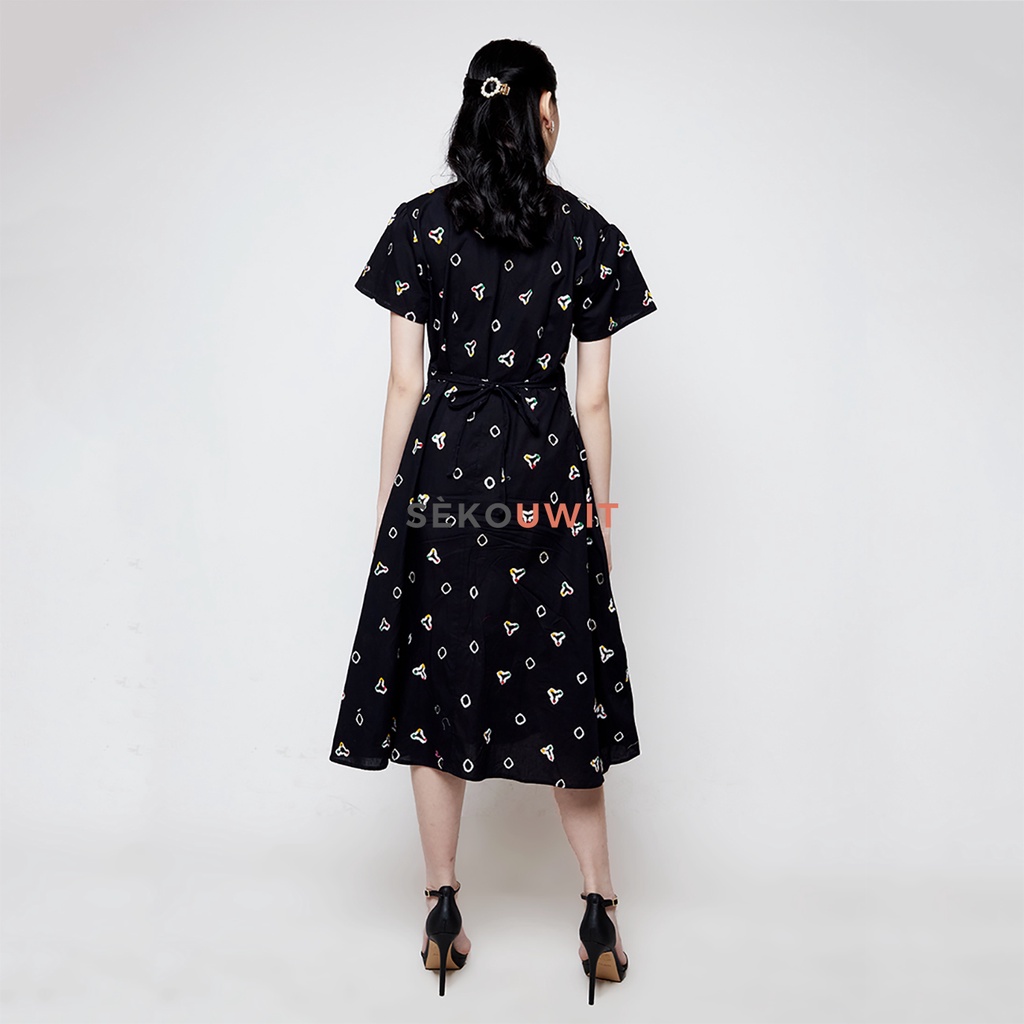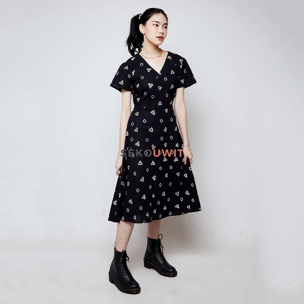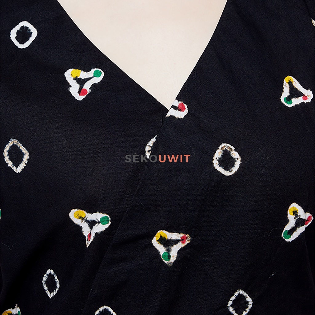 Fressia Jumputan Midi Wrap Dress / Dress Batik Midi Hitam Sekouwit